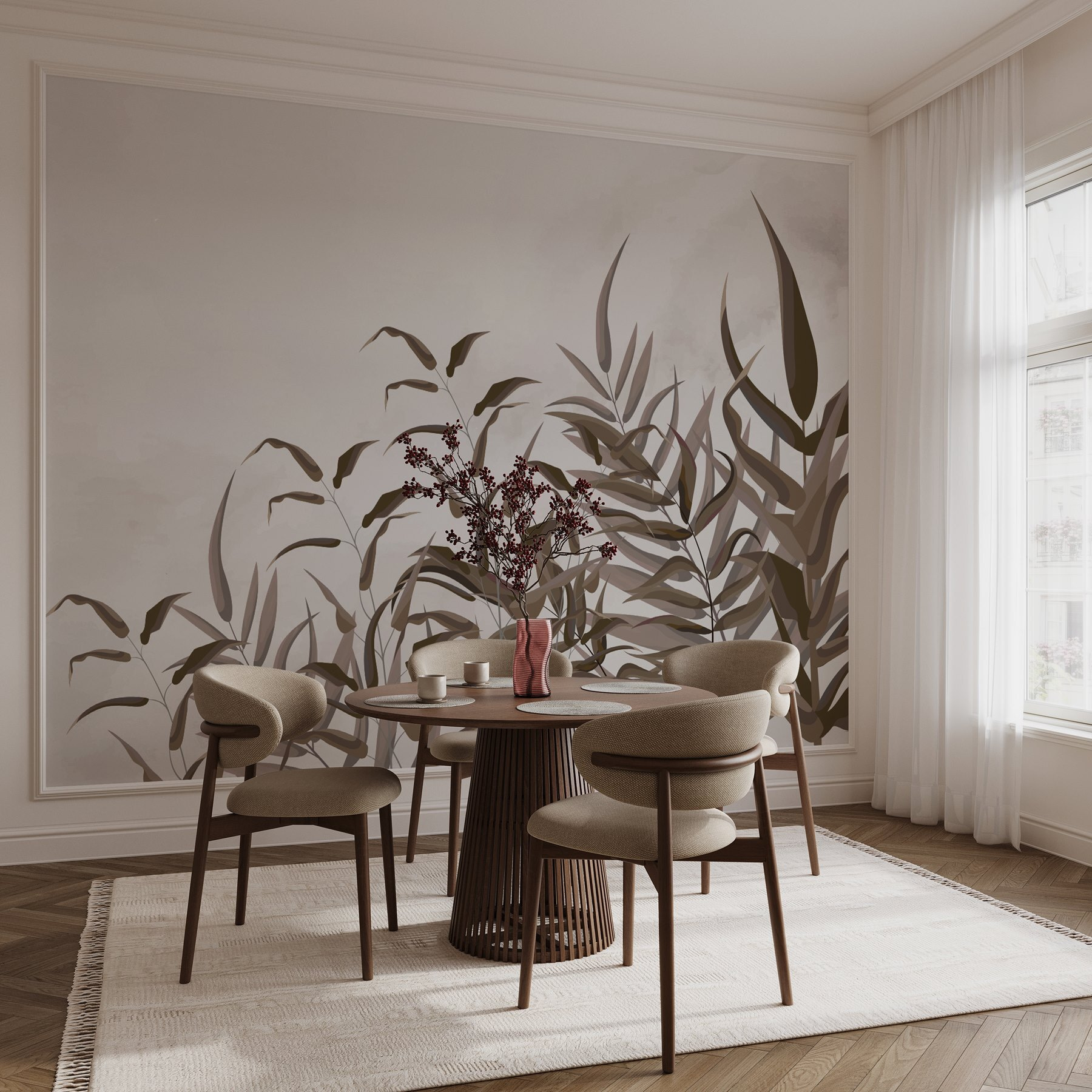 Transformez un mur ordinaire en un lieu de retraite confortable avec les “Muraux muraux Plante avec feuilles brunes”. Imaginez que vous vous promenez dans une forêt ensoleillée – ce mural apporte cette ambiance sereine dans votre espace de vie. Les marrons doux et les verts tendres créent une toile de fond paisible qui murmure “Détendez-vous ici”. Imaginez-vous en train de vous lover avec une tasse de thé alors que la lumière du soleil filtre à travers ces silhouettes feuillues. C’est comme l’étreinte de la nature sans les insectes extérieurs ! Parfait pour un coin de mur peu pratique ou pour rafraîchir votre bureau à domicile. Qui aurait cru qu’une peinture murale pouvait être aussi vivante ?