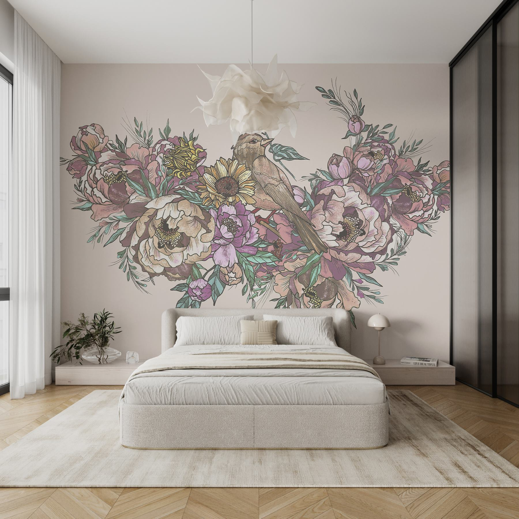 Transformez n’importe quel mur ennuyeux en une échappée belle grâce à cette magnifique peinture murale représentant un charmant oiseau perché sur un bouquet de fleurs. C’est un petit morceau de nature qui peut transformer n’importe quel espace en un havre de paix. Imaginez que vous sirotiez votre café du matin en contemplant cette beauté – des fleurs éclatantes de couleurs et un petit oiseau qui se tient là, comme s’il était la star du spectacle. C’est comme si vous faisiez entrer un jardin à l’intérieur sans avoir à l’arroser ! Parfait pour un salon ou même un coin lecture confortable, il ajoute de la chaleur et une touche de fantaisie. Qui aurait cru que l’art mural pouvait être aussi accueillant ?