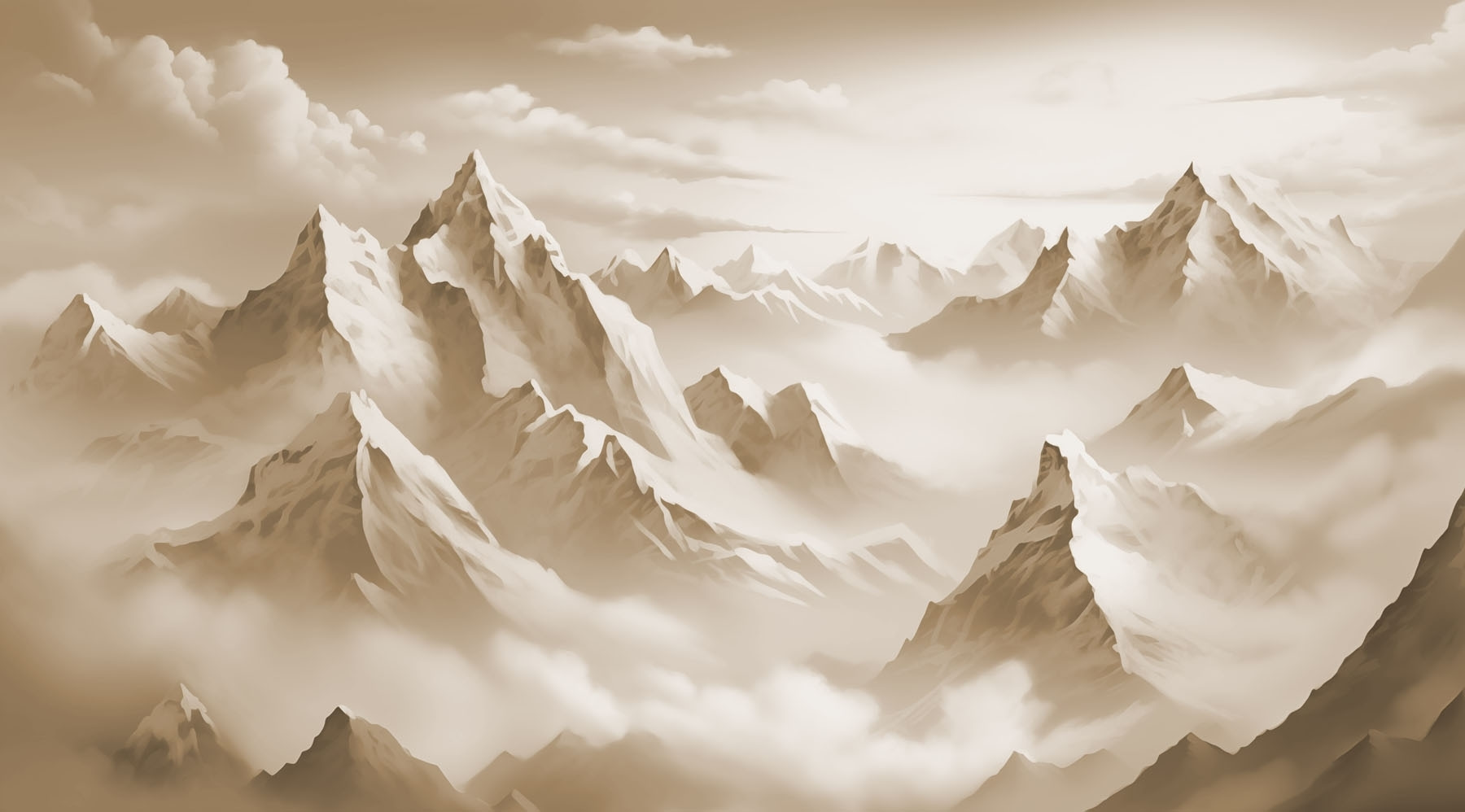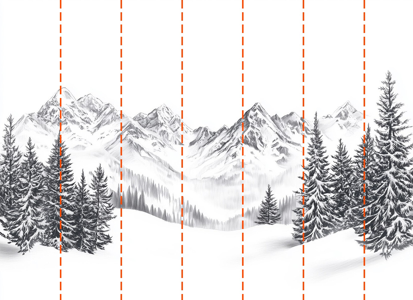 Papier peint Dessin d'une chaîne de montagnes enneigées