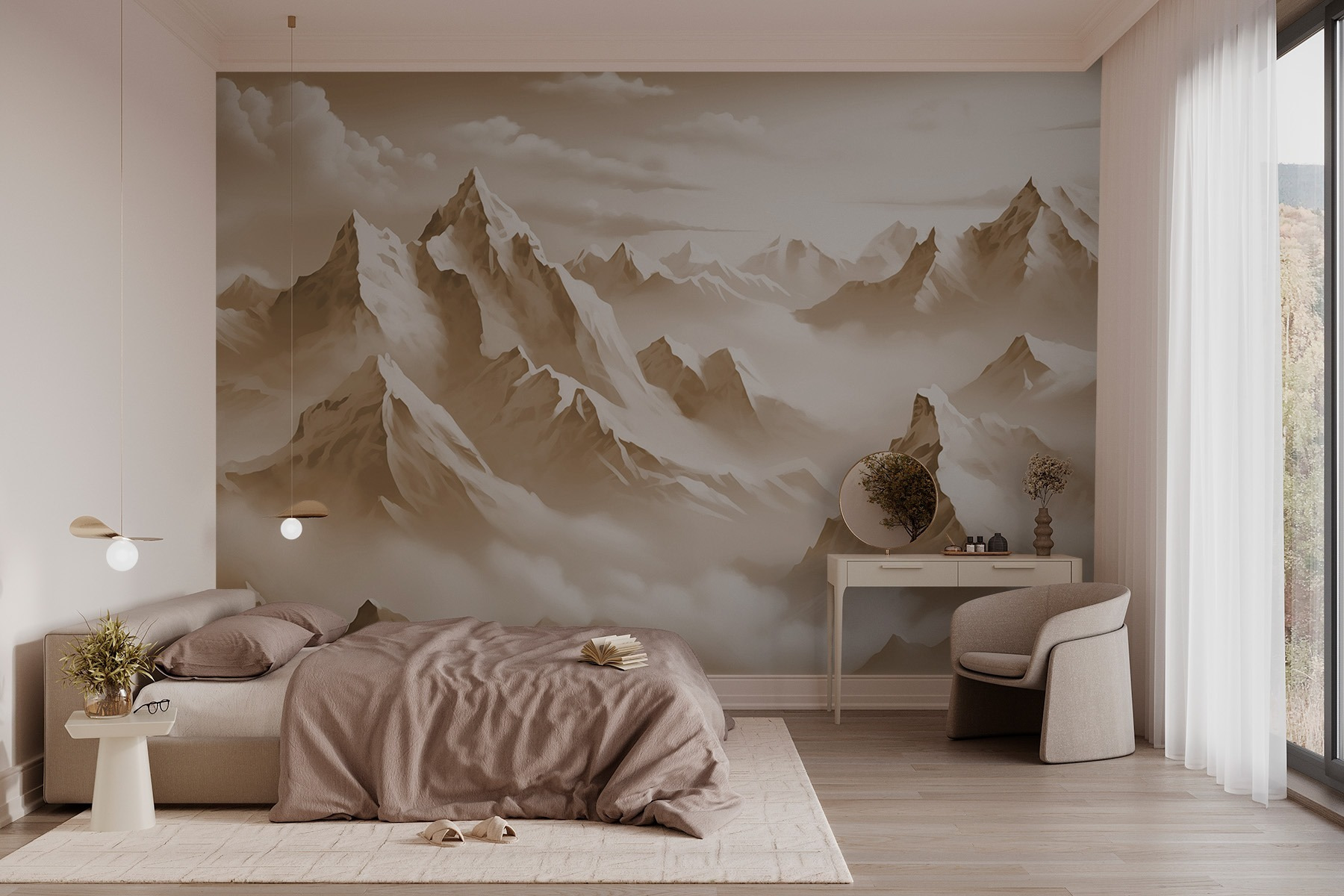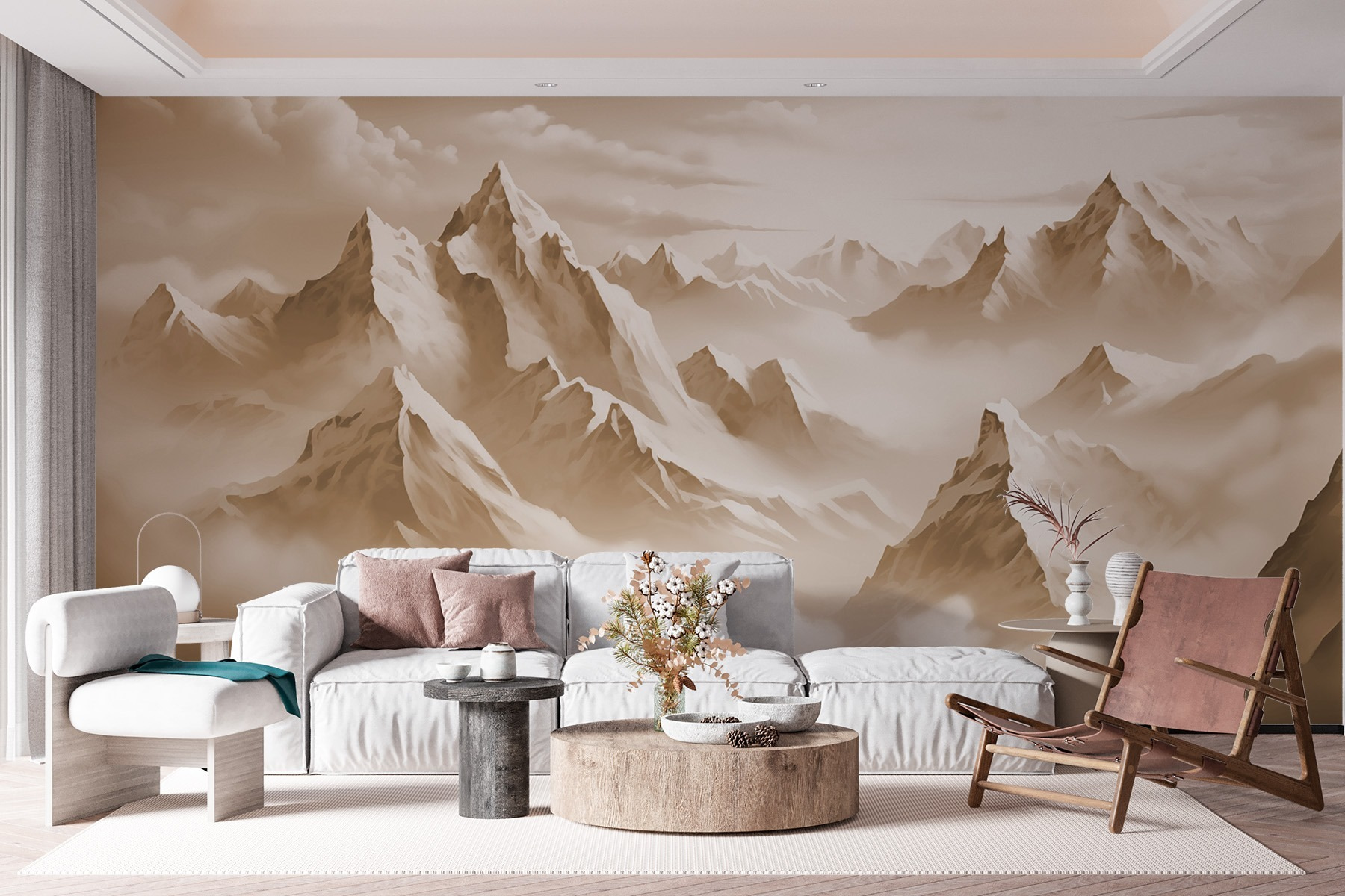 Transformez n’importe quelle pièce en un lieu d’évasion serein grâce à cette superbe peinture murale représentant une chaîne de montagnes enveloppée de nuages doux. C’est comme si vous aviez des mini-vacances sur votre mur ! Imaginez que vous vous réveillez, que vous sirotez votre café et que vous avez l’impression d’être niché dans les montagnes, sans avoir besoin de chaussures de randonnée. Le doux effet aquarelle crée une ambiance apaisante, parfaite pour une chambre à coucher ou un coin lecture confortable. Vos amis pourraient commencer à vous demander si vous avez déménagé dans une cabane. Croyez-moi, cette peinture murale a un charme que même votre ami le plus stylé admirera ! Parfait pour ajouter un peu de la beauté de la nature sans les inconvénients de l’extérieur.