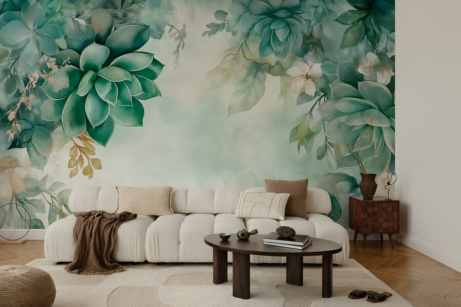 Transformez n’importe quelle pièce en une oasis de sérénité grâce à cette superbe peinture murale représentant des plantes vertes luxuriantes et des fleurs délicates. Imaginez que vous vous réveillez tous les matins avec une touche de nature, chaque détail feuillu chuchotant la détente dans votre espace. C’est comme si vous apportiez un jardin douillet à l’intérieur – parfait pour ceux d’entre nous qui ont peut-être du mal à garder une plante en vie (sans jugement ici). L’aquarelle douce donne une impression de légèreté et d’apaisement, évoquant des promenades paisibles dans un jardin ensoleillé. Chaque coup d’œil nous rappelle qu’il faut ralentir et respirer. Parfait pour ce mur qui réclame un peu de vie !