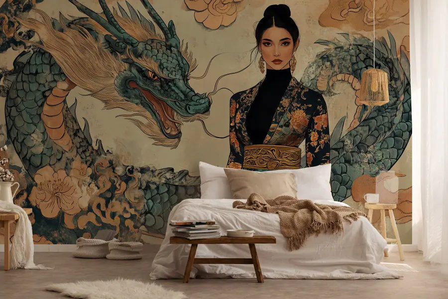 Transformez votre espace avec cette superbe peinture murale représentant une femme en kimono et un dragon majestueux. C’est comme si vous faisiez entrer un morceau d’histoire de l’art dans votre maison, et qui n’en voudrait pas ? Les teintes douces de l’aquarelle se mélangent sans effort, créant une atmosphère à la fois apaisante et captivante. Imaginez que vous sirotiez un thé en regardant cette beauté, comme si le dragon était sur le point de prendre vie et de se joindre à votre conversation. Que ce soit dans un salon, un bureau ou même une chambre à coucher de rêve, cette peinture murale stimule l’imagination. Elle invite à la chaleur et ajoute une touche unique, parfaite pour tous ceux qui cherchent à se faire remarquer sans dire un mot.