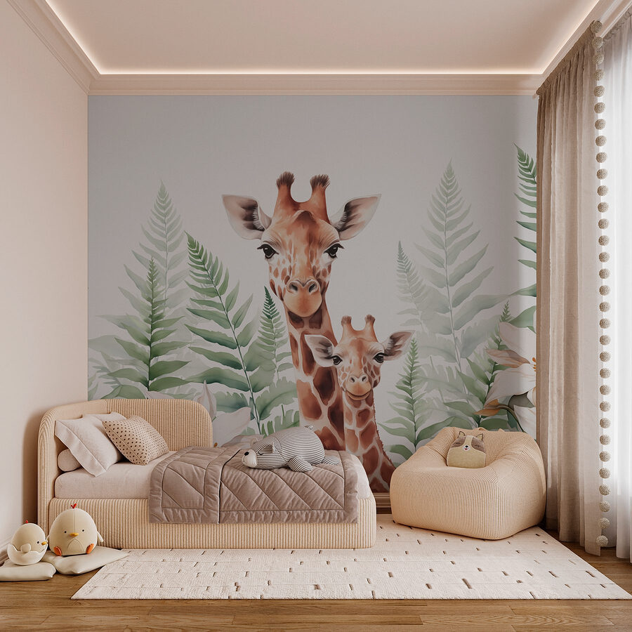 Transformez votre espace en un jardin fantaisiste avec cette ravissante peinture murale représentant de gracieuses girafes se faufilant à travers une verdure luxuriante et des fleurs délicates. C’est comme si vous apportiez une touche de savane dans votre salon ! Imaginez que vous sirotiez votre café du matin pendant que ces gentils géants veillent sur vous – c’est tellement serein. Parfait pour les chambres d’enfants, les salles de jeux ou tout autre endroit qui a besoin d’une touche d’espièglerie et de charme. De plus, qui ne sourirait pas devant ces adorables visages ? Ce n’est pas seulement un décor, c’est aussi une étreinte de la nature, qui invite la chaleur et la joie dans tous les coins.