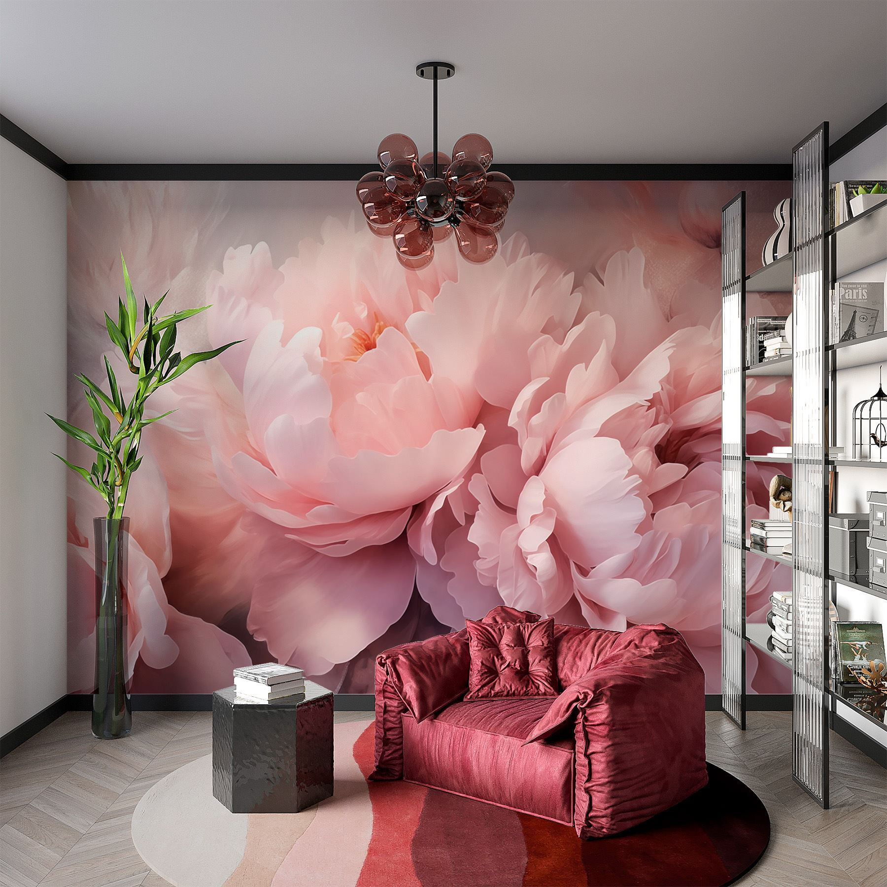 Transformez n’importe quel espace grâce au charme enchanteur de cette peinture murale, qui représente des pétales roses s’épanouissant gracieusement. C’est comme si vous pénétriez dans un jardin de rêve à chaque fois que vous entrez dans la pièce. Imaginez que vous sirotiez votre café du matin, entouré de pivoines si réalistes que vous pourriez chercher des abeilles ! Les teintes douces créent une ambiance sereine, parfaite pour un coin lecture confortable ou pour égayer un couloir. Vos amis vous demanderont sans doute d’où vient cette belle ambiance. Cette peinture murale ne se contente pas de décorer ; elle invite la chaleur, la sérénité et un soupçon de magie de la nature dans la vie de tous les jours.