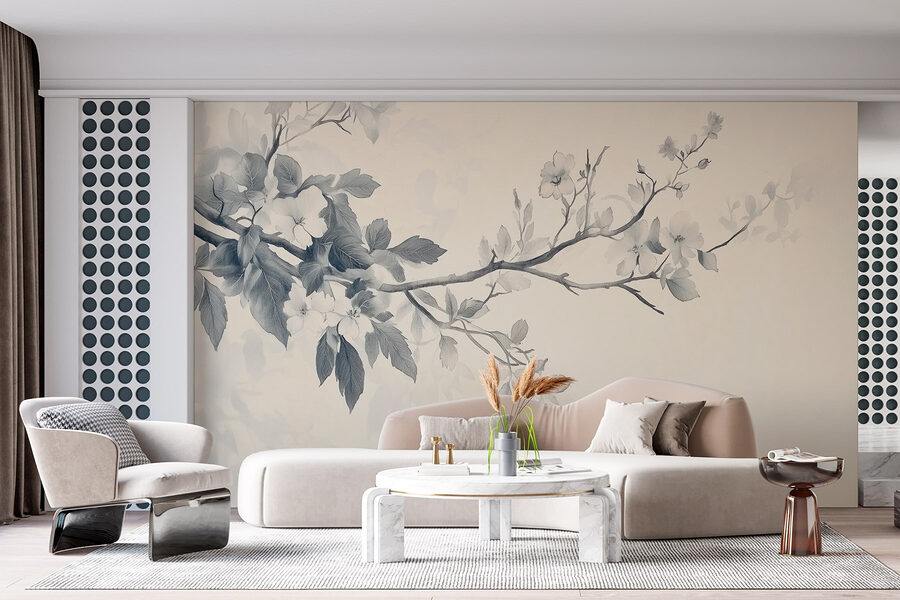 Transformez votre espace avec cette peinture murale enchanteresse, “Branche avec fleurs et feuilles”. Imaginez que vous vous promenez dans un jardin japonais serein, directement dans votre salon – un vrai bonheur, n’est-ce pas ? Des fleurs délicates et douces et des feuilles complexes flottent sur le mur, apportant une touche de tranquillité aussi rafraîchissante qu’une brise matinale. C’est comme une œuvre d’art de la nature, qui illumine sans effort n’importe quel coin terne. Parfait pour la rêverie ou les soirées douillettes, il invite à la chaleur et à la détente. Chaque coup d’œil peut faire surgir le souvenir d’une belle promenade dans le jardin ou de la fois où vous avez perdu la notion du temps en admirant des fleurs. Une véritable oasis !