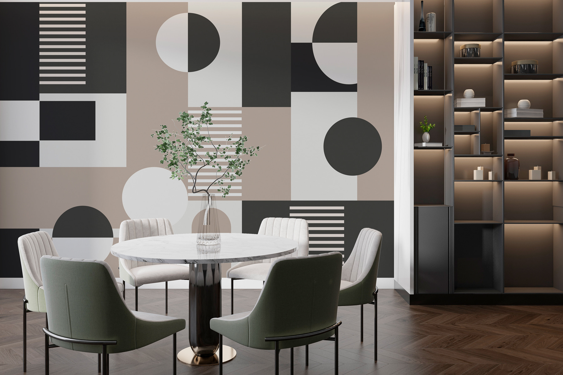 Transformez votre espace avec cette superbe peinture murale présentant un mélange ludique de formes géométriques. C’est comme une galerie d’art moderne dans votre salon, ce qui est parfait pour susciter des conversations. Imaginez-vous en train de vous lover dans un bon livre ou de recevoir des amis pendant qu’ils admirent les noirs audacieux, les beiges doux et les blancs éclatants. Cette peinture murale ajoute une touche de sophistication sans être guindée – qui n’aime pas un peu d’élégance excentrique ? Il est facile d’oublier le monde extérieur lorsqu’on est entouré d’œuvres d’art comme celle-ci. Et soyons honnêtes, il serait également fantastique sur Instagram !