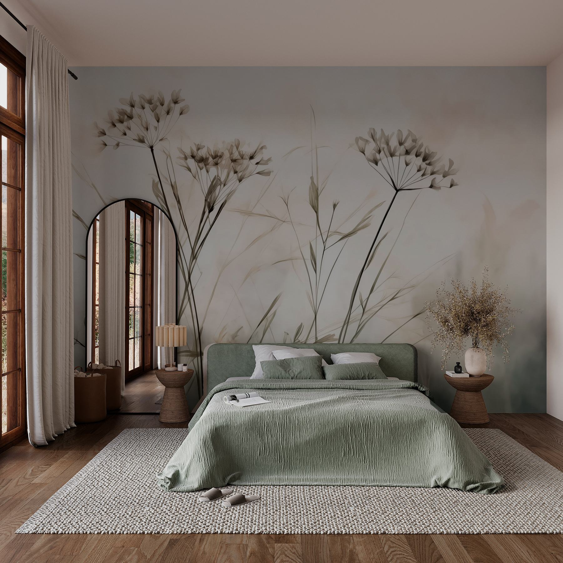 Apportez une touche de nature à l’intérieur avec la peinture murale “Fleurs délicates dans des tons doux”. Ce motif serein évoque l’élégance, mêlant des pétales doux et des verts tendres qui donnent l’impression d’une bouffée d’air frais. Imaginez que vous entrez dans une pièce où les murs semblent fleurir et où les papillons voltigent (d’accord, c’est peut-être juste dans votre imagination). C’est la toile de fond idéale pour les dimanches après-midi paresseux ou pour inspirer des vibrations créatives. De plus, qui ne voudrait pas avoir l’impression de se trouver dans une aquarelle ? C’est comme faire son nid dans un jardin, le pollen en moins !