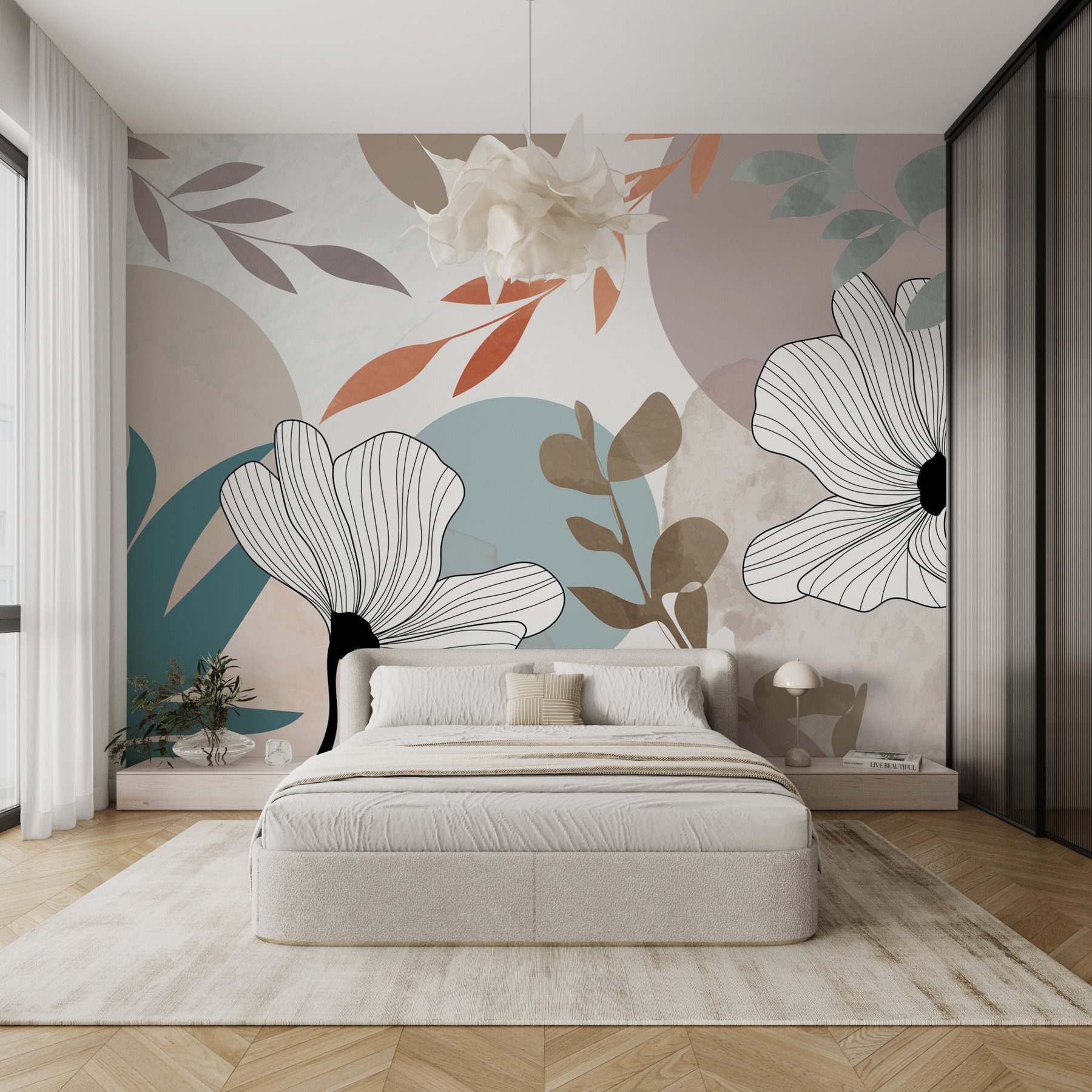 Transformez votre espace avec cette superbe peinture murale composée de délicates fleurs blanches, de feuilles brunes et de cercles bleus amusants. C’est comme si vous apportiez un peu de nature à l’intérieur sans avoir à vous soucier de l’arrosoir. Imaginez que vous vous réveillez avec ce motif vibrant, où de douces aquarelles dansent ensemble, créant une ambiance apaisante, parfaite pour siroter un café le matin ou faire une petite sieste l’après-midi. Il s’agit d’une impression de fraîcheur et d’art qui peut donner à n’importe quelle pièce l’impression d’être une galerie d’art accueillante. L’ajout de cette peinture murale est un moyen rapide de redonner vie à un mur terne et de susciter une grande joie de vivre – qui n’en voudrait pas ?