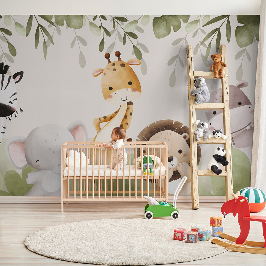 Illuminez n’importe quelle pièce avec cette délicieuse peinture murale représentant un défilé ludique d’adorables animaux nichés sous des auvents feuillus. Imaginez une girafe curieuse qui prend la pose, tandis qu’un éléphant joyeux danse autour d’elle – c’est adorable ! Cette scène fantaisiste apporte chaleur et espièglerie, parfaite pour une chambre d’enfant ou un coin lecture confortable. Chaque personnage semble avoir sa propre histoire, ce qui stimule la créativité et les sourires. Les couleurs douces et les expressions amicales invitent au calme, transformant n’importe quel espace en une mini retraite dans la jungle. Croyez-moi, vous vous surprendrez à sourire à chaque fois que vous passerez devant !