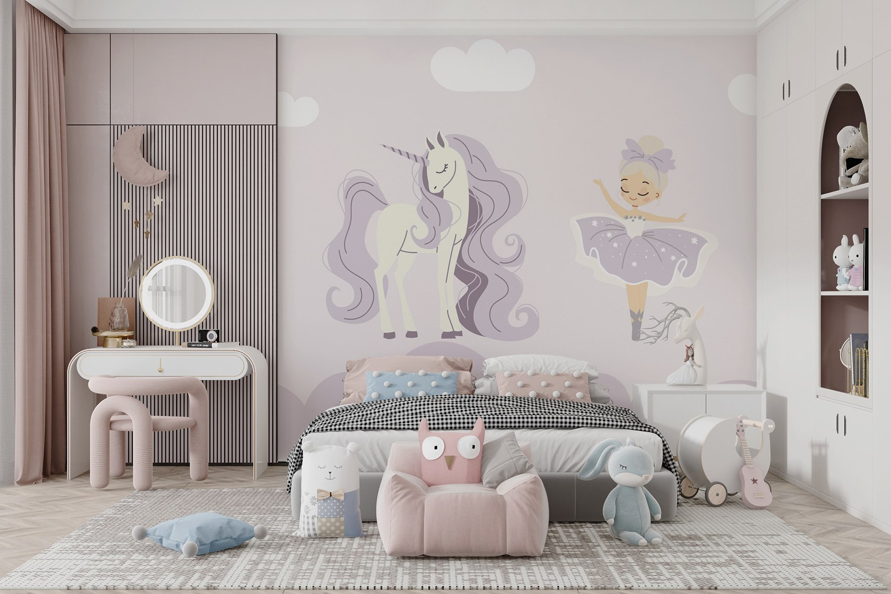 Transformez n’importe quel espace en un pays des merveilles fantaisiste avec les “Muraux Licorne et Ballerine”. Imaginez : une jolie licorne et une gracieuse ballerine dansant dans un ciel pastel de rêve. C’est comme si vous aviez un petit morceau de magie sur votre mur ! Les enfants (et, soyons honnêtes, les adultes aussi) peuvent se perdre dans leur imagination, rêvant de virevoltes et de scintillements. Parfaite pour une salle de jeux ou une chambre, cette peinture murale peut donner un air de conte de fées au mur le plus terne. Imaginez les sourires des amis qui viendront les voir – tout le monde aime une bonne histoire de licorne, n’est-ce pas ? C’est doux, charmant et tellement inspirant – la toile de fond idéale pour les aventures et les rêves !