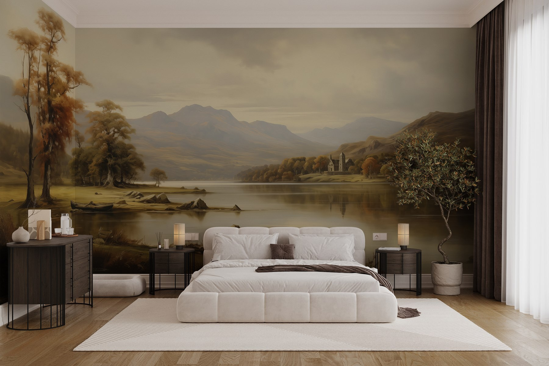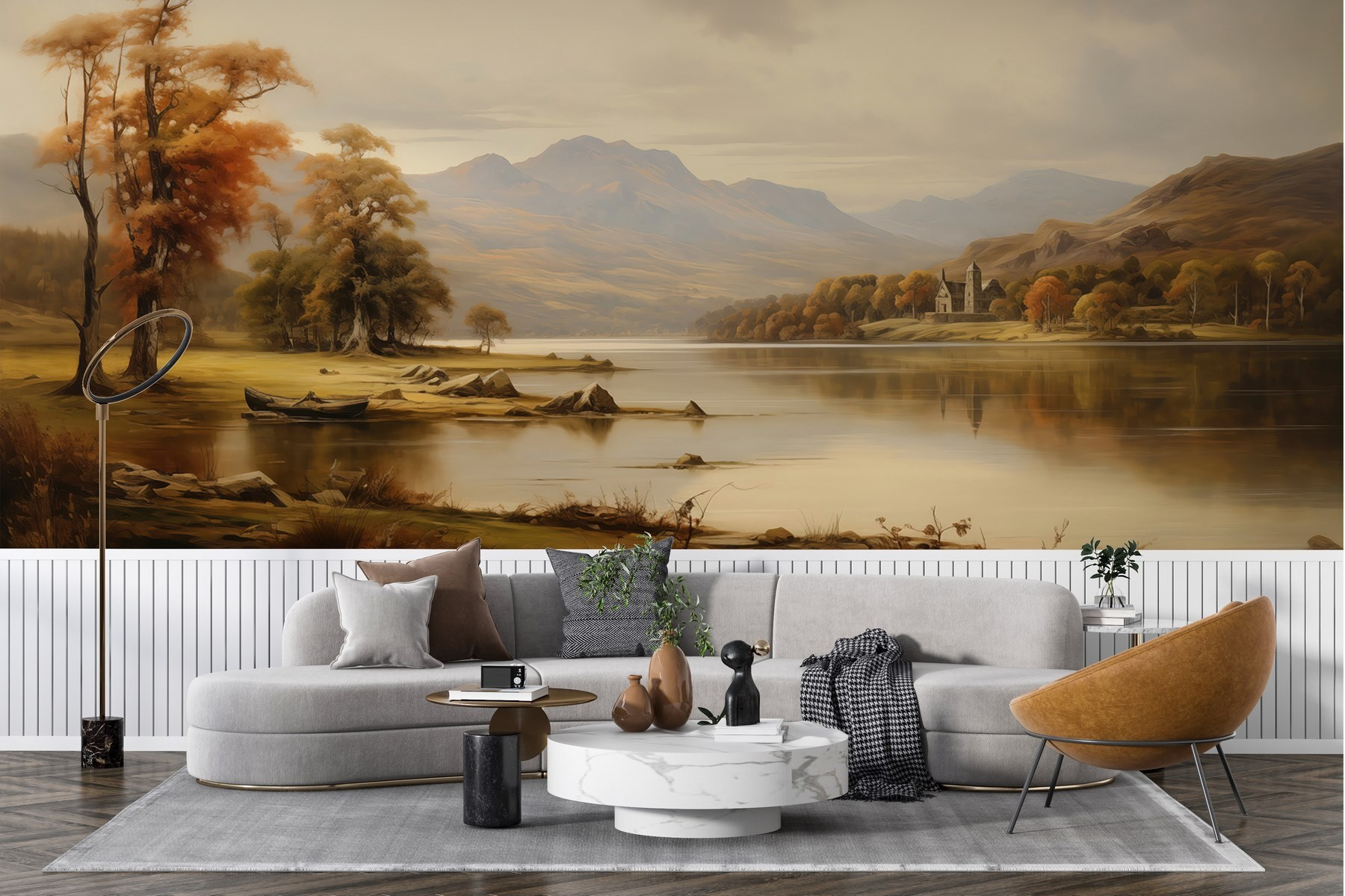 Transformez n’importe quel espace en une escapade sereine grâce à cette superbe peinture murale représentant un lac paisible entouré d’arbres et de montagnes majestueux. Imaginez que vous vous réveillez tous les jours devant cette scène paisible et que vous avez l’impression d’être dans l’étreinte de la nature. Les teintes chaudes évoquent un sentiment de calme, tandis que les douces ondulations de l’eau incitent à la rêverie. Qu’il s’agisse d’un salon douillet ou d’une chambre à coucher apaisante, cette peinture murale évoque la détente. Elle pourrait même inspirer une randonnée spontanée en fin de semaine, mais il faut se préparer à des bottes boueuses par la suite !