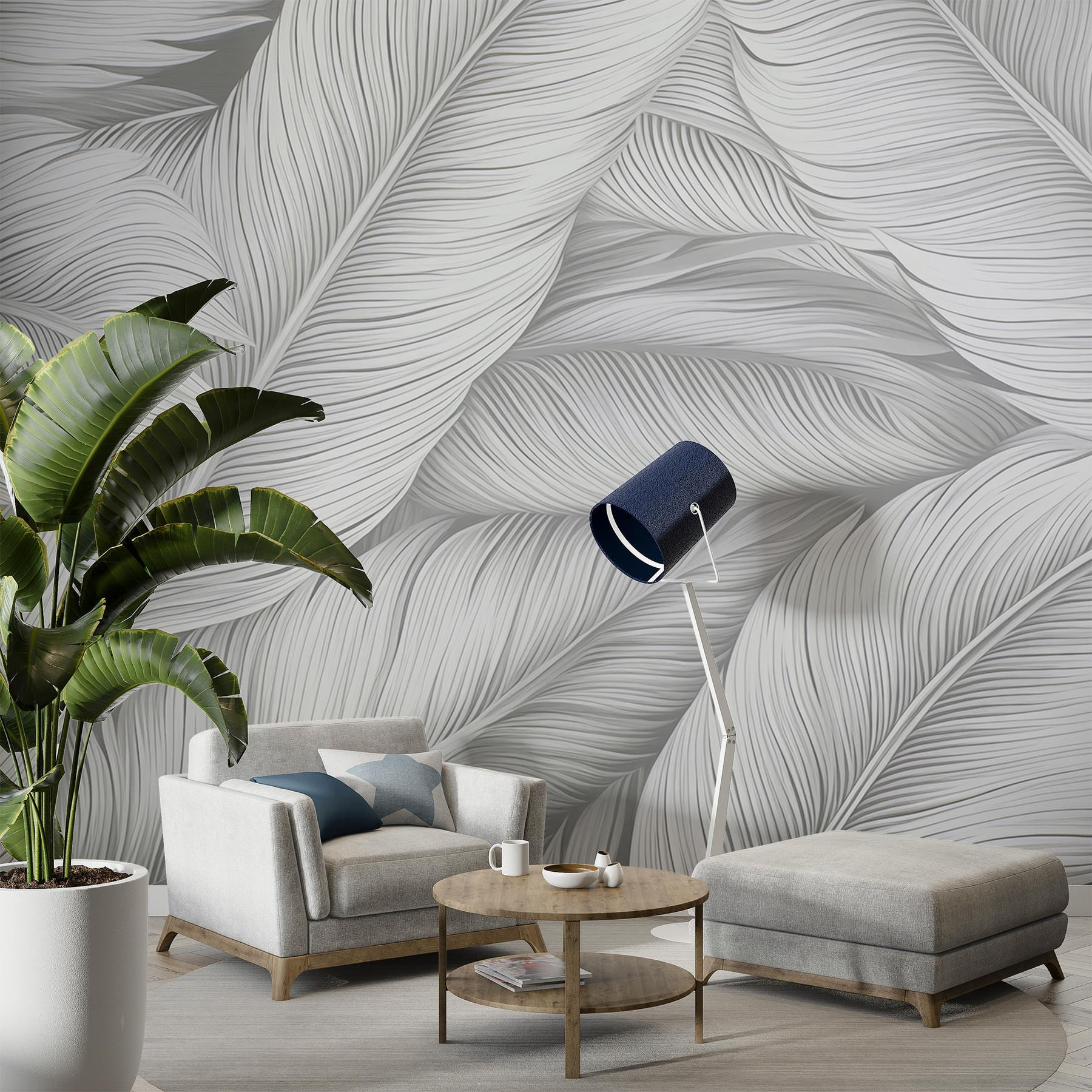 Entrez dans un espace enveloppé d’ondes apaisantes grâce à cette peinture murale représentant des feuilles douces et fluides dans des tons doux et monochromes. C’est comme si vous faisiez entrer un jardin serein à l’intérieur, sans les insectes gênants ni l’arrosoir. Imaginez que vous organisiez une réunion confortable, où tout le monde admire l’élégant mur, avec l’impression d’être tombé dans un refuge chic et tranquille. Les détails subtils apportent une touche artistique qui invite à l’introspection, idéale pour siroter un thé ou rêvasser. Que ce soit dans un salon ou un coin lecture paisible, cette peinture murale transforme les murs en une bouffée d’air frais. Votre pièce mérite un peu de la grâce de la nature, ne pensez-vous pas ?