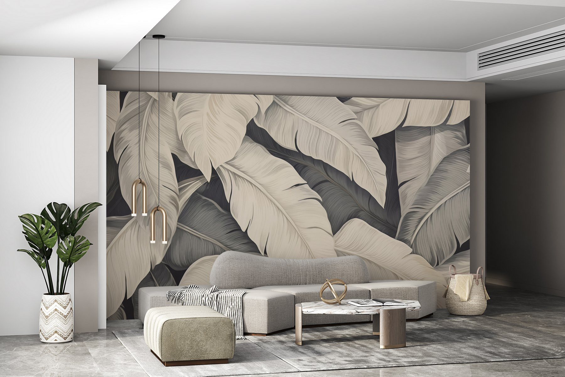 Chaque feuille danse sur votre mur, vous invitant à vous détendre et à vous relaxer. Les tons subtils sont apaisants, parfaits pour se blottir avec un livre ou siroter cette tisane étrangement spécifique. Vos amis pourraient même complimenter votre goût chic, se demandant s’il y a un jardin secret caché dans votre maison. Sérieusement, cette fresque murale pourrait facilement susciter des rêveries d’escapades tropicales. Et qui n’aime pas les petites aventures sans quitter son canapé ?