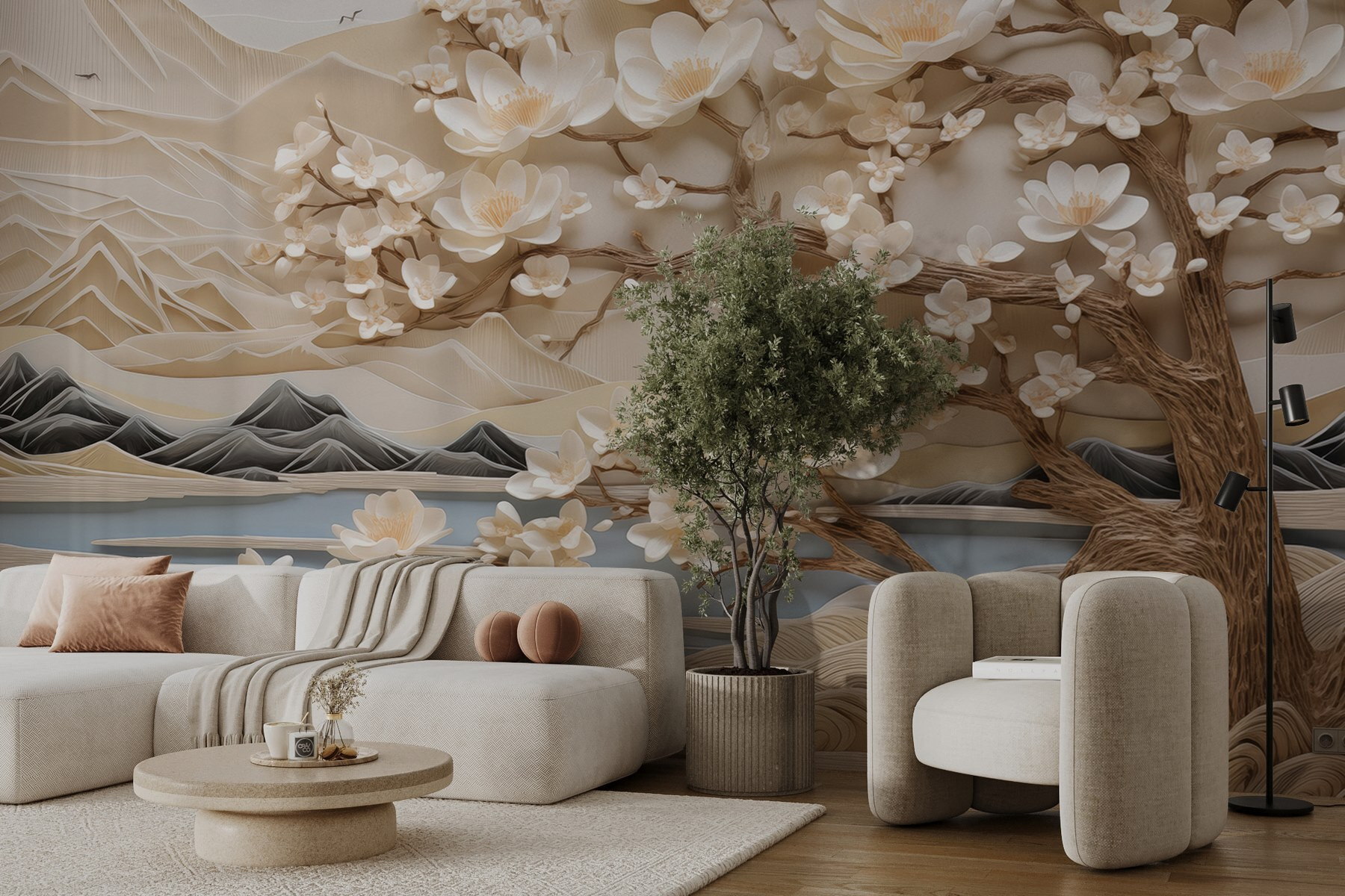 Transformez votre espace avec cette ravissante fresque murale représentant un arbre orné de délicates fleurs blanches sur fond de montagnes majestueuses. C’est comme si vous faisiez entrer un peu de nature dans votre intérieur, sans les inconvénients du jardinage. Imaginez-vous vous réveiller devant ce paysage serein, où les couleurs douces évoquent la tranquillité et un soupçon de mystère. Les pétales semblent danser dans la brise, invitant à la rêverie et à la sérénité. Elle est parfaite pour toute pièce qui a besoin d’une touche d’élégance, qu’il s’agisse d’un coin confortable ou d’un salon animé. Imaginez-vous avec une tasse de thé à la main, contemplant ces montagnes, avec l’impression d’être dans un jardin japonais paisible, tout cela entre vos quatre murs. Voilà le genre de décoration qui vous fait sourire !