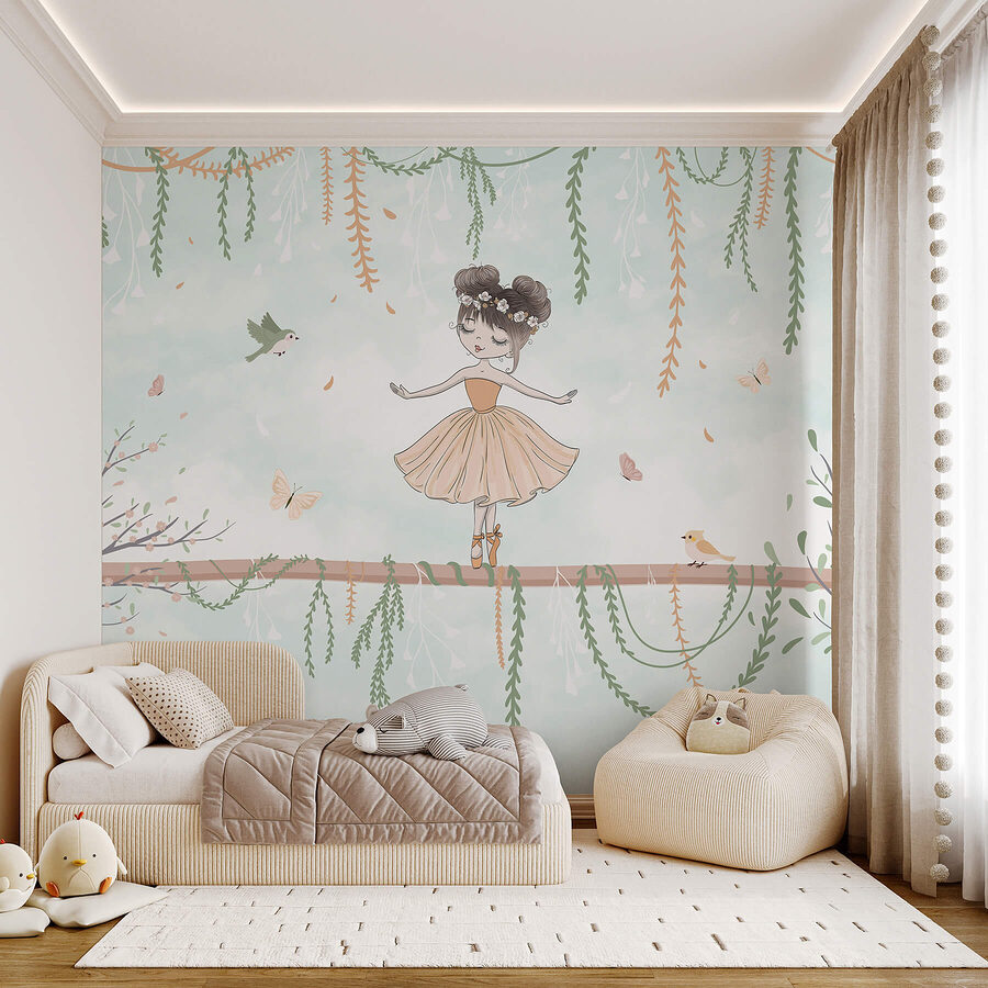 Imaginez une escapade fantaisiste sur vos murs ! Cette charmante fresque murale représente une adorable petite fille dansant sur une branche, entourée de papillons virevoltants et d’oiseaux curieux. Le fond pastel doux crée une atmosphère sereine, transformant n’importe quelle pièce en une retraite forestière de rêve. Elle est parfaite pour stimuler l’imagination des petits ou simplement ajouter une touche de magie à une chambre d’enfant ou une salle de jeux. Imaginez l’heure du conte se transformer en aventure tandis que les enfants contemplent cette scène enchanteresse, complètement perdus dans sa douceur. Sérieusement, qui ne voudrait pas virevolter joyeusement avec elle ? Une touche de joie pour les murs qui appellent le sourire !