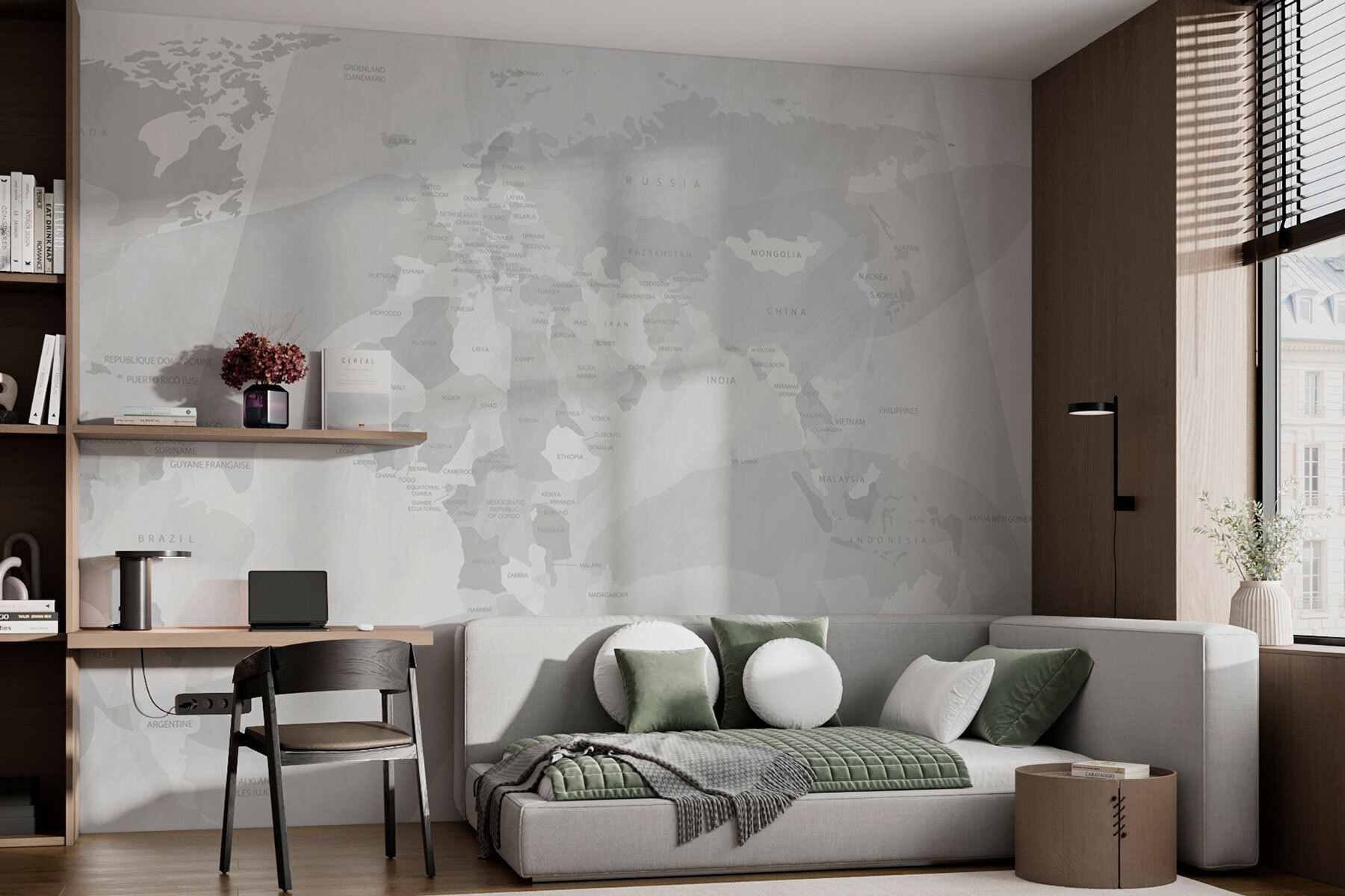 Voyez exactement à quoi ressemblera votre espace avec un nouveau papier peint avant d’acheter. Visualisation professionnelle par des designers experts, sans aucun coût ni obligation d’achat.