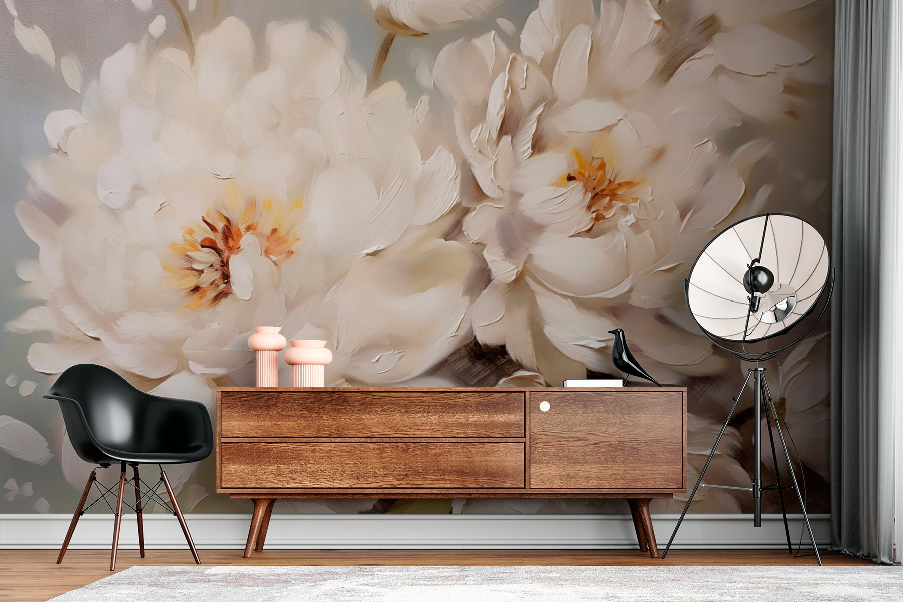 Transformez votre espace avec cette peinture murale enchanteresse composée de délicates fleurs blanches qui semblent s’épanouir directement sur le mur. Imaginez que vous pénétrez dans un jardin serein à chaque fois que vous entrez dans la pièce – les doux pétales attirent le regard, invitant à la chaleur et au calme. Cette superbe peinture murale est comme une bouffée d’air frais, parfaite pour égayer n’importe quel coin de votre maison. Imaginez des après-midi paresseux passés à siroter un thé, entouré de cette beauté paisible. Plus qu’un simple décor, c’est un petit morceau de nature qui murmure l’élégance. C’est aussi un endroit idéal pour discuter avec les invités !