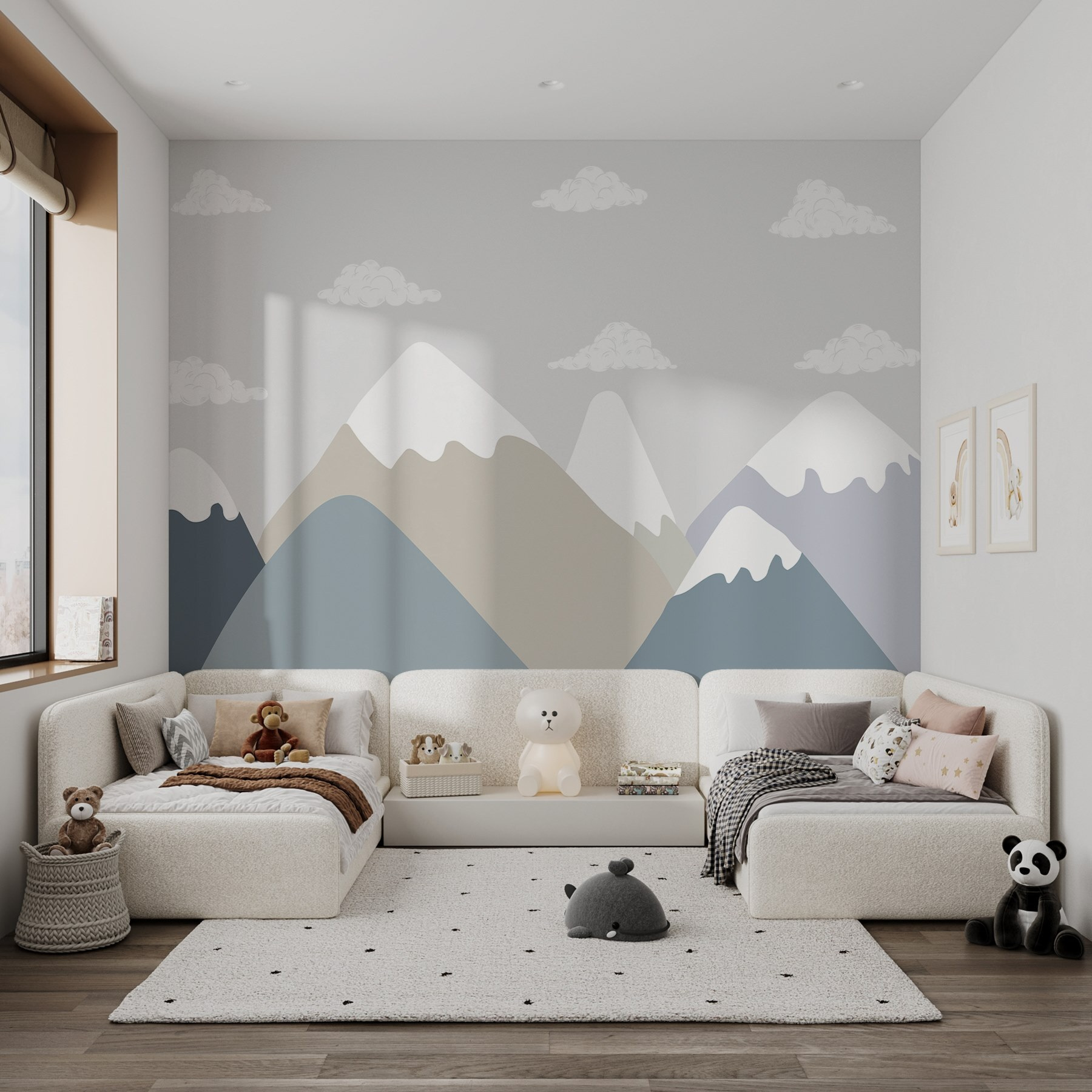 Transformez votre espace avec cette ravissante peinture murale représentant des chaînes de montagnes paisibles et des nuages cotonneux qui flottent. Imaginez que vous entrez dans une pièce où vous vous sentez comme une bouffée d’air frais, une échappatoire à la routine quotidienne. Les teintes douces de bleu et de beige invitent à la sérénité, ce qui est parfait pour un coin lecture confortable ou une chambre à coucher tranquille. Imaginez-vous en train de vous lover dans un bon livre, de vous perdre dans la beauté de la nature sans sortir de chez vous. C’est comme si vous aviez votre propre coin de nature, les insectes en moins. Il est temps de laisser ces murs parler !