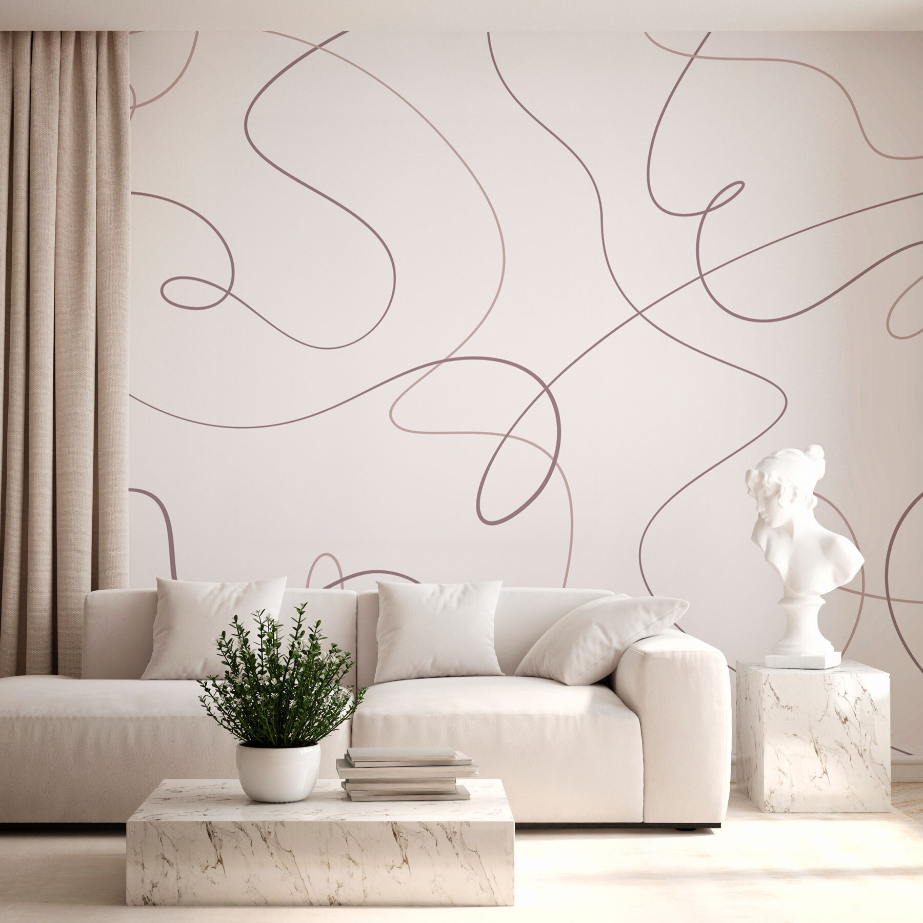 Imagine cozying up with friends, and the mural gently whispers, “Here’s a little flair!” It keeps things light and airy, perfect for that minimalist vibe everyone loves. The simple yet elegant design can transform any room into a serene sanctuary or a trendy hangout. Whether it’s a living room or home office, this mural gets the vibe just right. And who knew lines could be this soothing? Perfect for those days when life feels a bit chaotic—it’s like a calm breath for your walls!