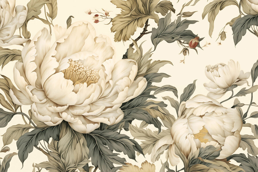 Transform any room into a serene oasis with the “Wall Murals Elegant Blooms in Soft Tones.” Imagine stepping into your space, greeted by those lush peonies, soft ivory petals whispering calming vibes. It’s like a gentle hug for your walls! The muted greens and warm hues create a cozy atmosphere, perfect for unwinding after a long day.