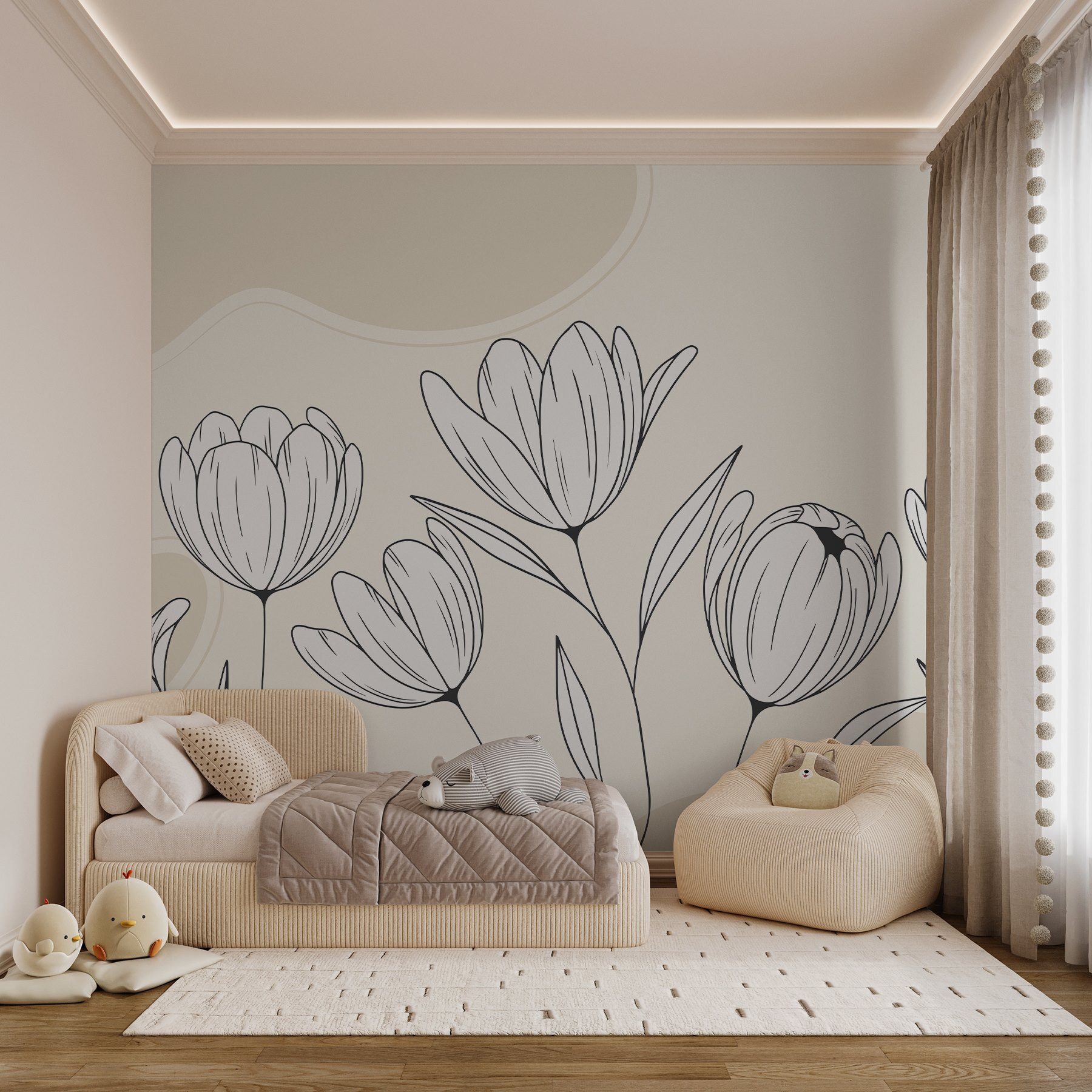 Transform any room with this stunning “Wall Murals Line Drawing of Flowers.” Imagine stepping into a space that feels like an elegant garden, minus the pollen allergies! The clean, minimalist design captures the essence of blooming flowers, bringing warmth without overwhelming the senses. Perfect for cozy nooks or those walls craving a pop of personality, it’s like art that whispers sophistication. Picture a lazy Sunday afternoon, a cup of tea in hand, and those graceful blooms providing the backdrop for unwinding. Who wouldn’t want that vibe? Plus, it makes a striking conversation starter—because we all need a little floral magic in our lives!