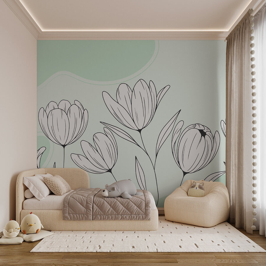 Apportez une bouffée d’air frais dans votre espace avec cette superbe fresque murale, qui représente un ravissant dessin au trait de fleurs. Elle allie à la perfection élégance et simplicité. Imaginez-vous en train de siroter votre café un dimanche matin paresseux, entouré de ces fleurs qui ne se fanent jamais. Le fond vert tendre donne une impression de légèreté et d’espace, ce qui la rend idéale pour n’importe quelle pièce, qu’il s’agisse d’un coin lecture confortable ou d’un coin bureau tendance. Elle rappelle avec douceur la beauté de la nature, sans le pollen ! De plus, elle constitue un excellent sujet de conversation. Qui n’aimerait pas discuter de la façon dont l’art peut instantanément égayer une ambiance ? Alors, pourquoi ne pas laisser ces fleurs apporter un peu de charme et de créativité à vos murs ?