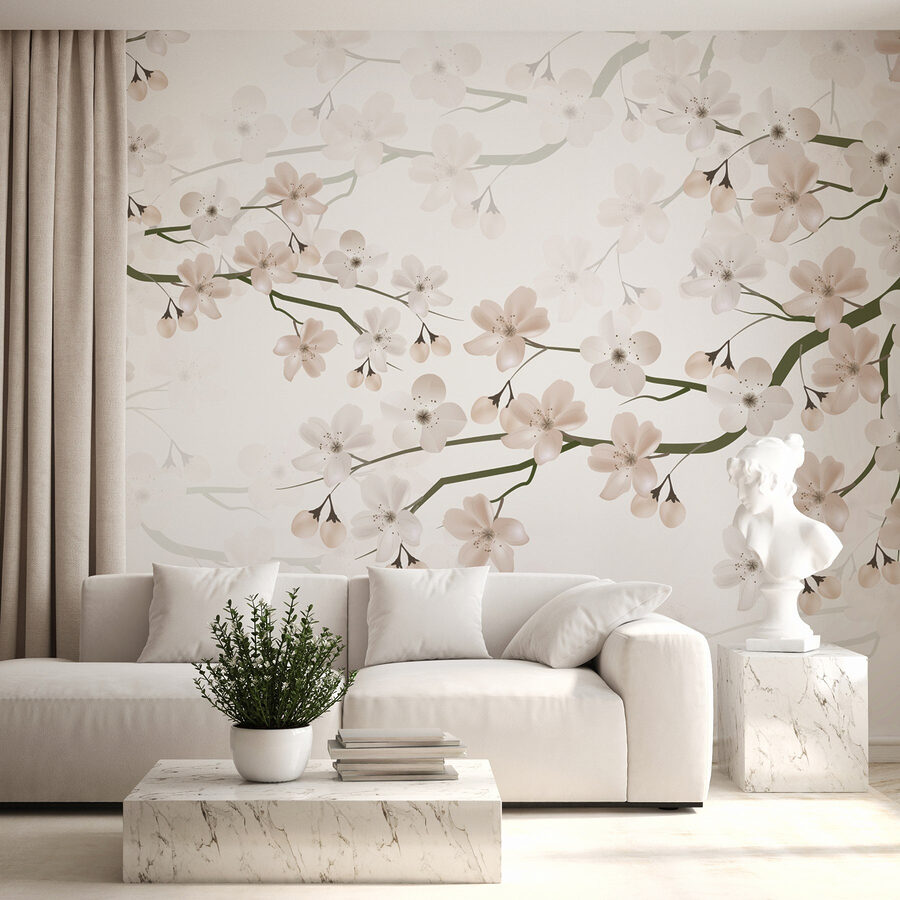 Imaginez-vous entrer dans une pièce qui ressemble à un jardin serein en pleine floraison : c’est ce que vous offre la fresque murale « Fleurs blanches sur une branche ». Avec ses fleurs délicates et ses couleurs douces, cette fresque illumine sans effort n’importe quel espace, transformant l’ordinaire en extraordinaire. C’est comme si les fleurs murmuraient des mots doux à vos murs.