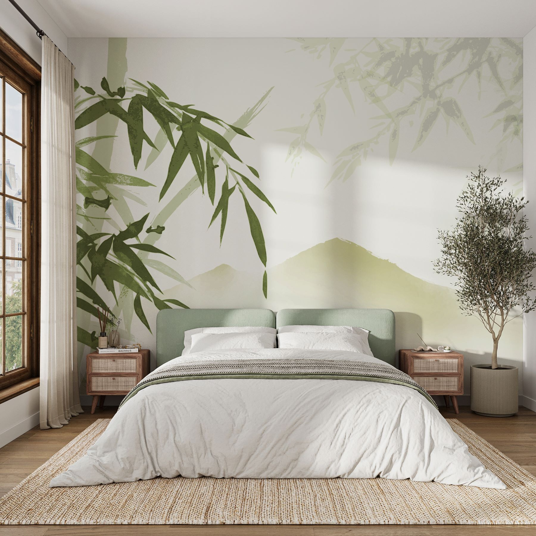 Transformez un mur uni en un havre de paix grâce à la fresque murale « Calming Bamboo and Mountain Landscape » (Paysage apaisant de bambous et de montagnes). Imaginez que vous entrez dans votre chambre et que vous êtes immédiatement envahi par une vague de tranquillité. Les verts doux et les images apaisantes de bambous vous donnent presque l’impression d’entendre le bruissement des feuilles dans une forêt balayée par la brise. Imaginez-vous en train de siroter un thé tout en contemplant ces montagnes… Ah, rien de tel qu’une mini-vacance à la maison ! Elle est parfaite pour créer un coin confortable ou ajouter une touche de nature à n’importe quel espace. Idéale pour ces moments où vous avez juste besoin de faire une pause et de respirer. Alors, pourquoi ne pas laisser entrer un peu de nature ?