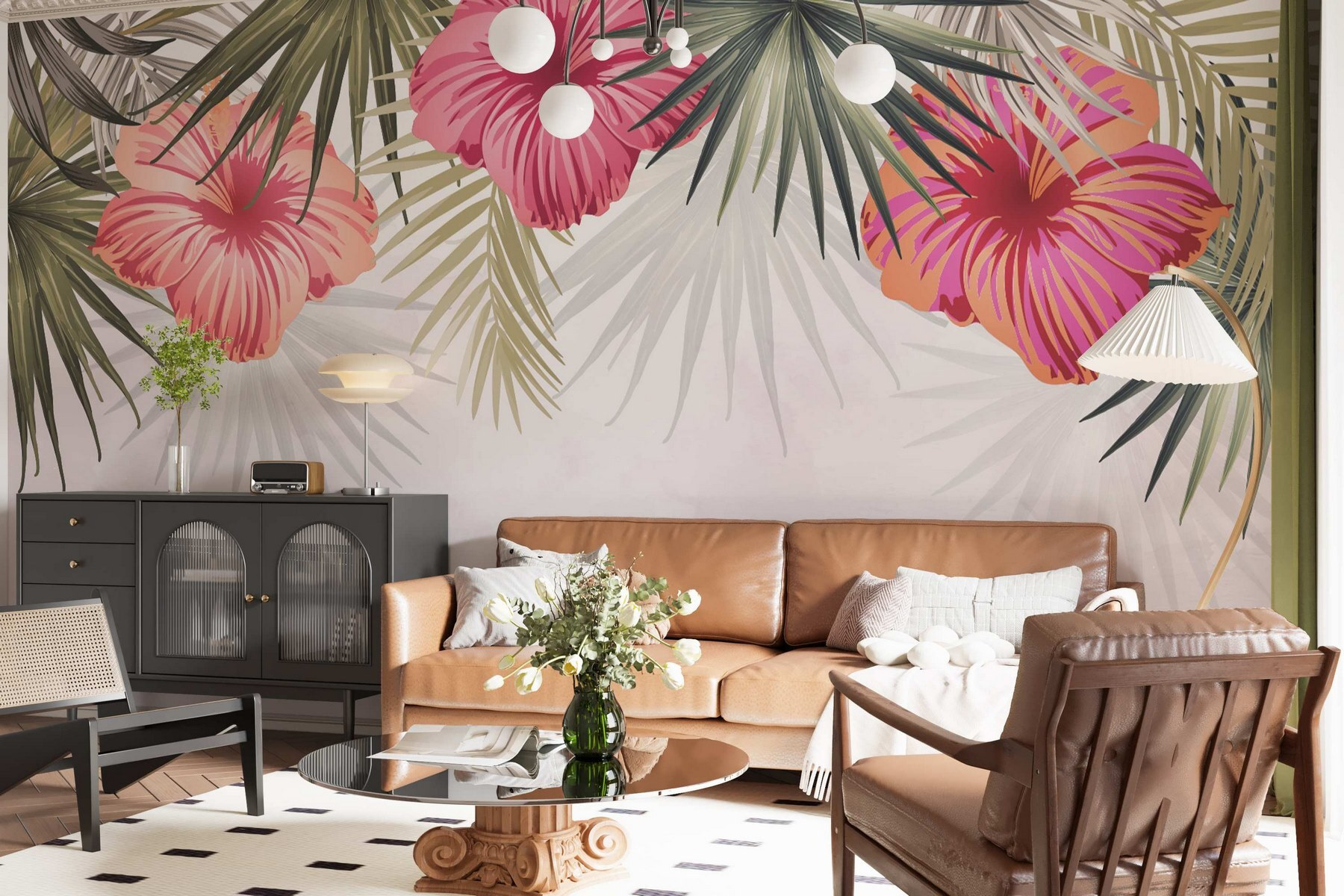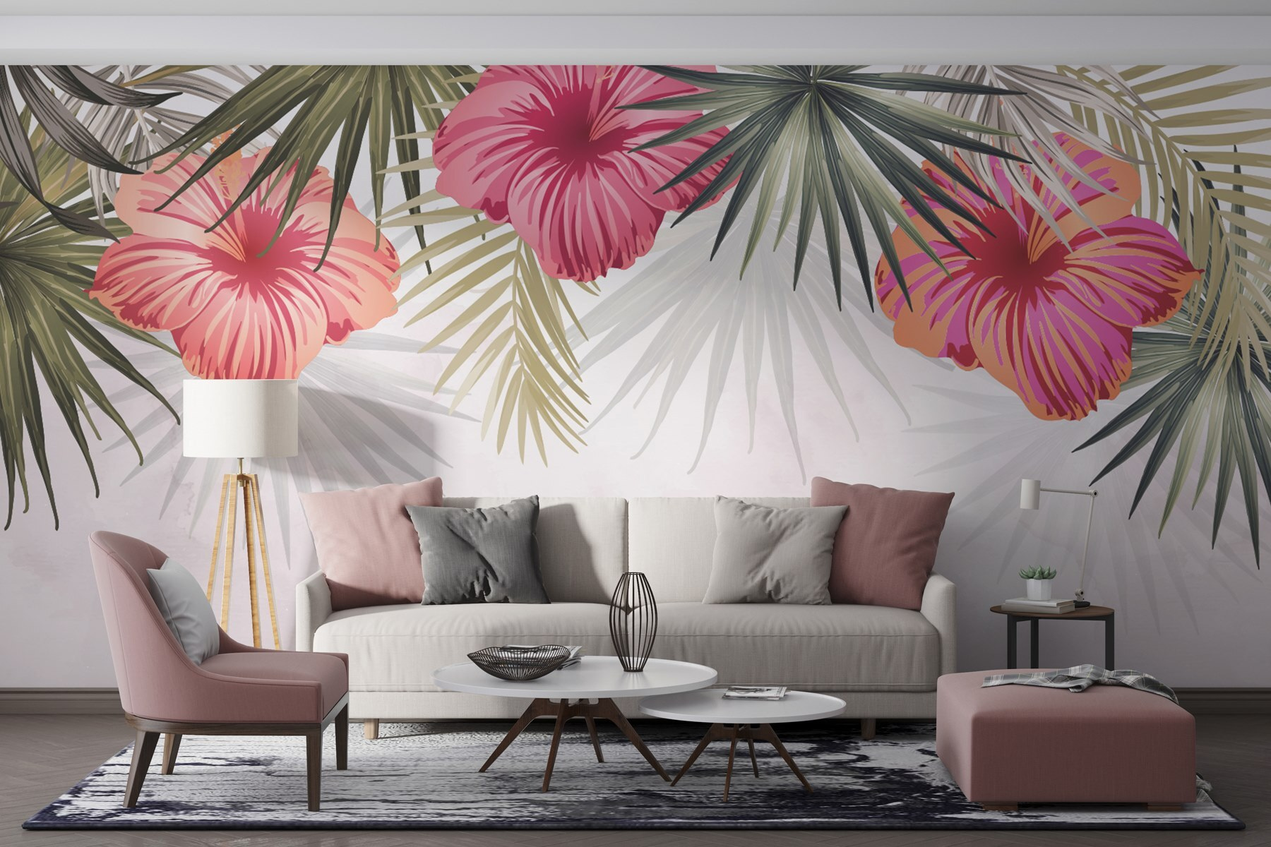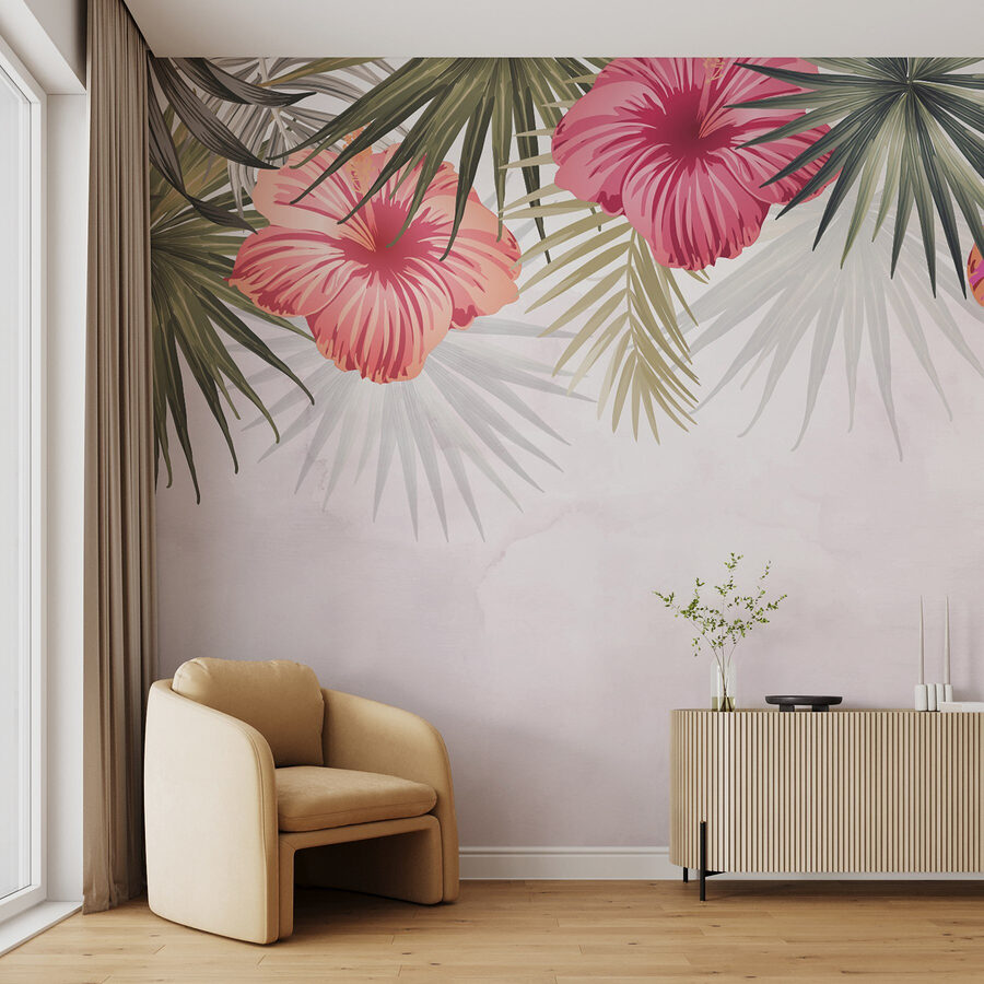 Transformez n’importe quelle pièce en paradis tropical grâce à cette superbe fresque murale représentant des fleurs roses mêlées à des feuilles vertes luxuriantes. Elle apporte une touche de nature dans votre intérieur et est parfaite pour égayer un espace terne. Imaginez-vous en train de prendre votre café du matin entouré de ces fleurs éclatantes… cela pourrait même vous inspirer quelques rêveries ! Les couleurs ressortent sur un fond doux, ce qui en fait une pièce maîtresse sans pour autant attirer l’attention. Bien sûr, les plantes ont besoin d’être arrosées, mais cette beauté ne nécessite que peu d’entretien ! Parfaite pour ceux qui recherchent une touche de nature sans se soucier de l’entretien des plantes. Alors, n’hésitez plus, laissez vos murs s’épanouir !