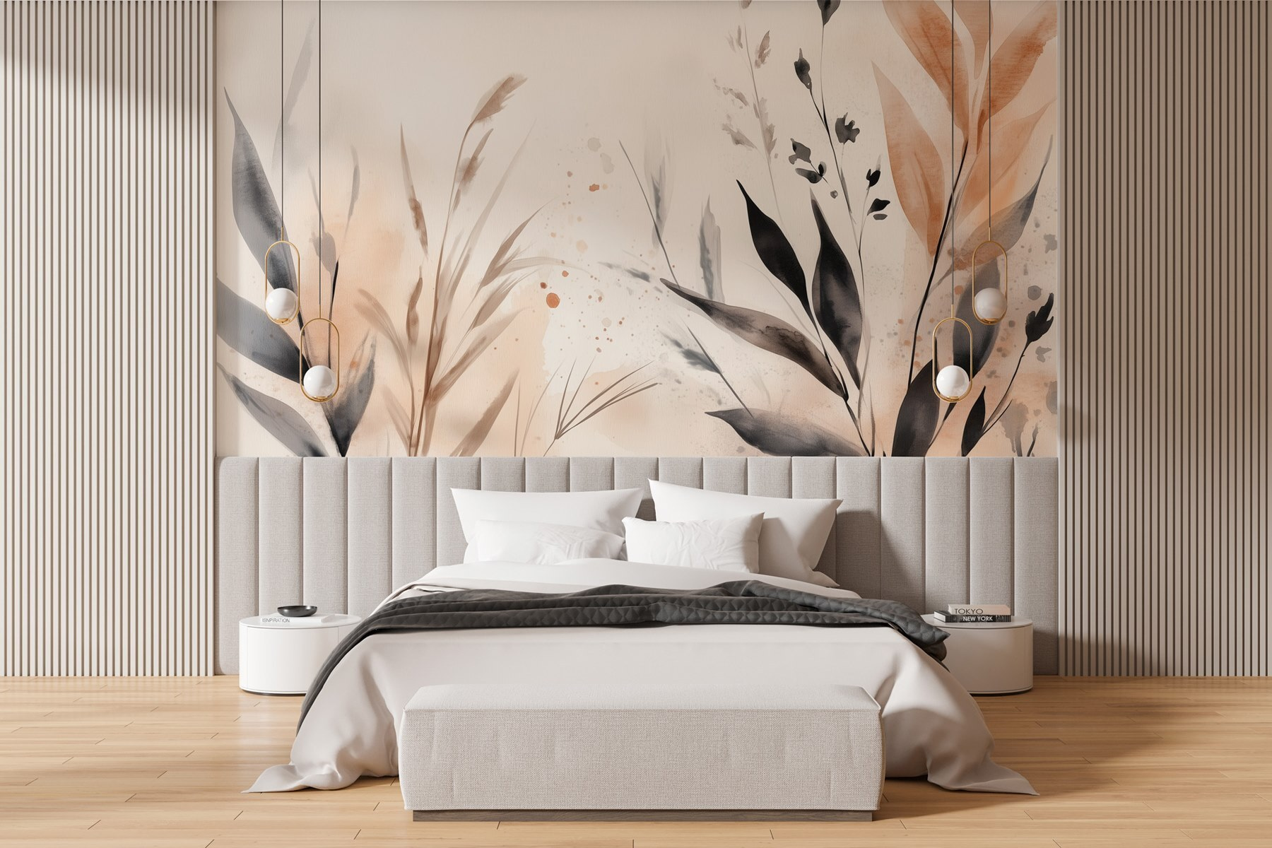 Imaginez que vous pénétrez dans une petite oasis de sérénité, chez vous, grâce à “Gentle Hues of Nature’s Embrace” (Douces nuances de l’étreinte de la nature). Cette fresque murale murmure pratiquement la paix, avec de douces feuilles d’aquarelle dansant sur une toile de fond délicate. C’est comme si vous invitiez une douce brise dans votre salon – un peu magique, non ? Parfaite pour rêvasser ou se détendre après une longue journée, elle apporte l’extérieur à l’intérieur, sans les insectes nuisibles. Imaginez un coin lecture confortable ou une salle à manger animée transformée en une retraite tranquille. Il s’agit d’un sentiment de calme et d’élégance qui vous donne envie de siroter un thé et de savourer l’instant présent.