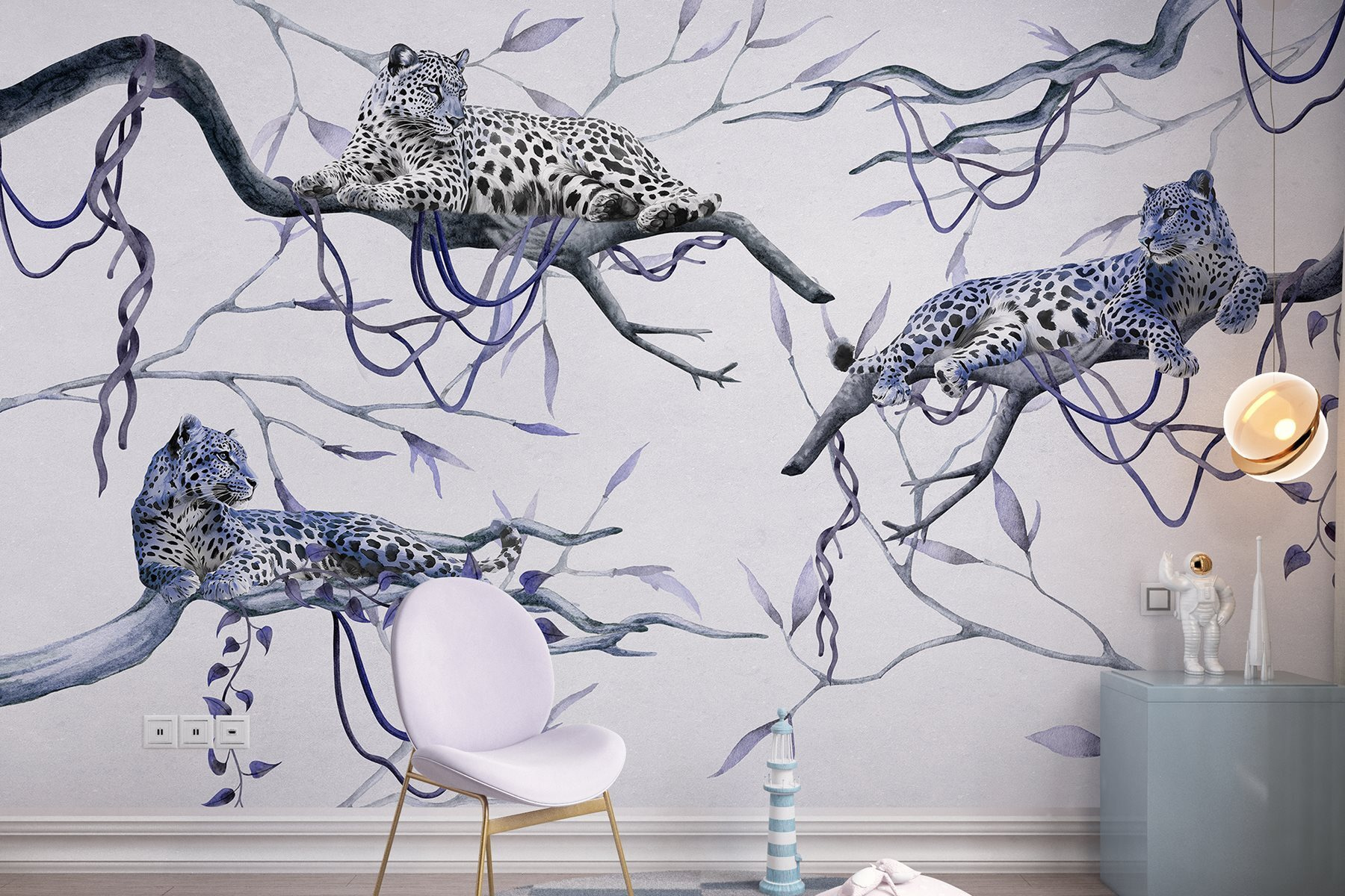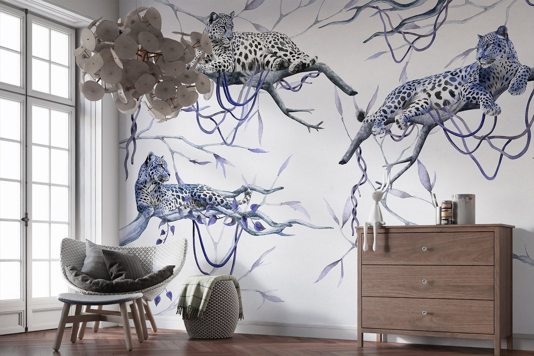Transformez votre espace en un paradis sauvage grâce à cette fresque captivante représentant des léopards se prélassant sur des branches. Imaginez-vous vous réveiller et avoir l’impression d’être dans une forêt paisible. Ces magnifiques félins, avec leurs taches saisissantes et leur attitude calme, apportent une atmosphère particulière à la pièce. Parfaite pour un salon ou un coin confortable, cette fresque murale n’est pas seulement un élément de décoration, c’est comme avoir un petit coin de nature chez soi. Les couleurs douces et les détails de l’œuvre invitent à rêver d’aventures tropicales tout en offrant une sensation de détente. C’est là que la faune sauvage rencontre la chaleur, qui ne voudrait pas de cela ?