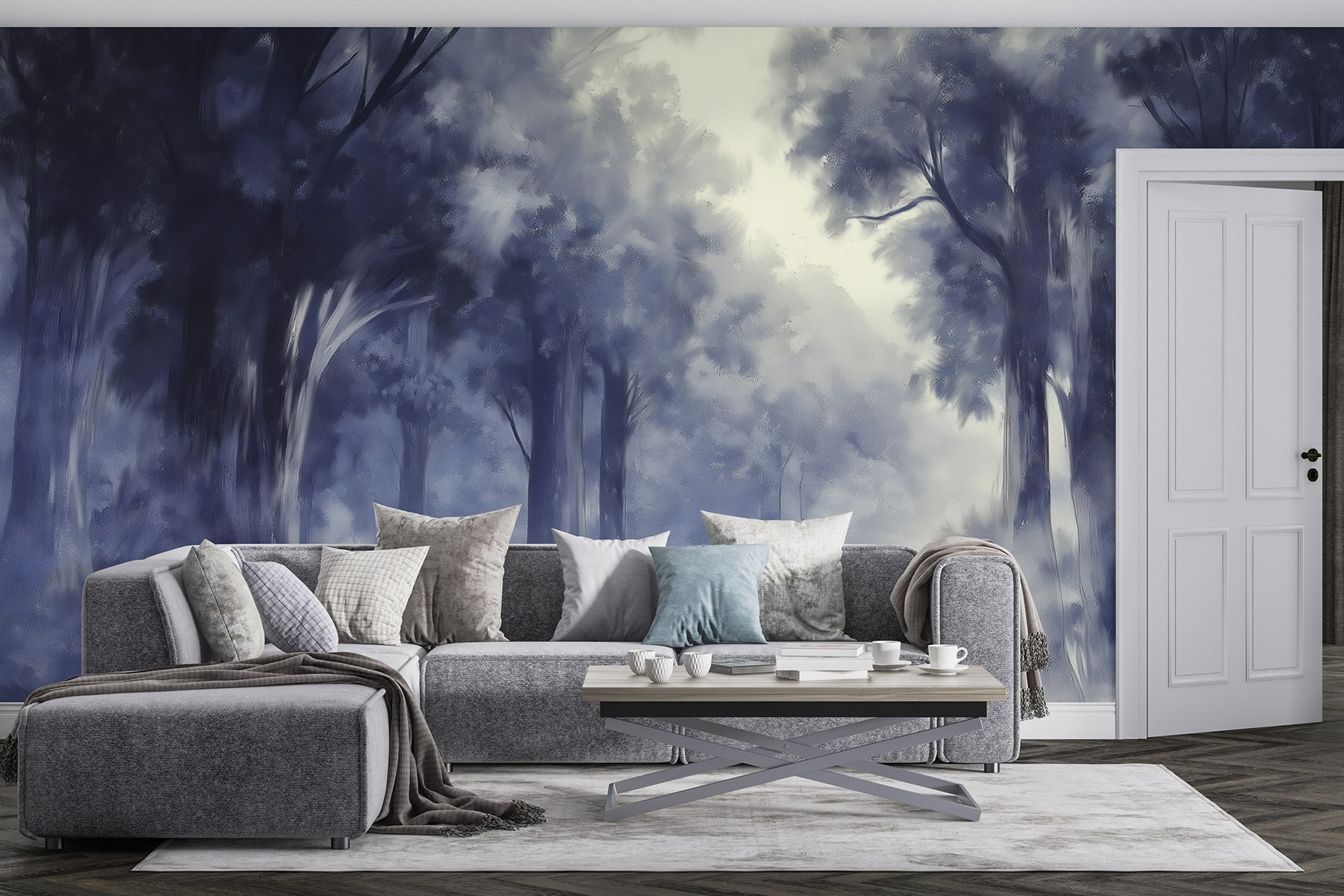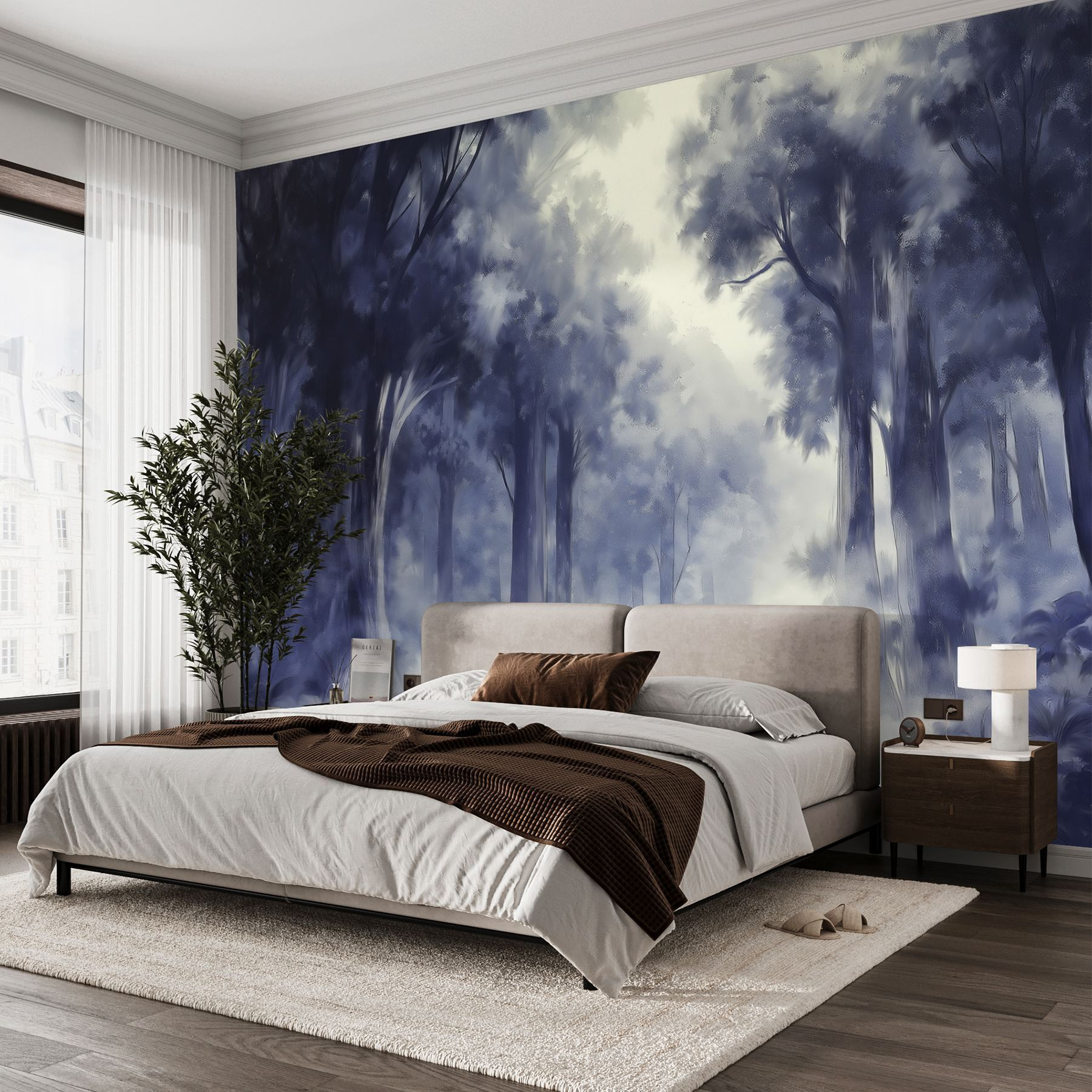 Transformez n’importe quelle pièce en un havre de paix grâce à cette fresque murale « Foggy Forest ». Imaginez-vous dans une forêt enchantée, où la brume enveloppe délicatement les arbres imposants, créant une atmosphère chaleureuse dans votre espace. Elle est parfaite pour le coin où vous sirotez votre café le matin ou vous installez confortablement avec un livre. Les tons bleus apaisants évoquent la tranquillité, vous permettant de vous détendre facilement après une longue journée. Vos amis entreront, prendront une grande inspiration et diront : « Waouh, j’ai l’impression d’être dans un conte de fées ! » Qui ne voudrait pas d’un peu de magie chez soi ? De plus, cela nous rappelle que la nature peut être à portée de vue, même lorsque le temps dehors semble indiquer le contraire.