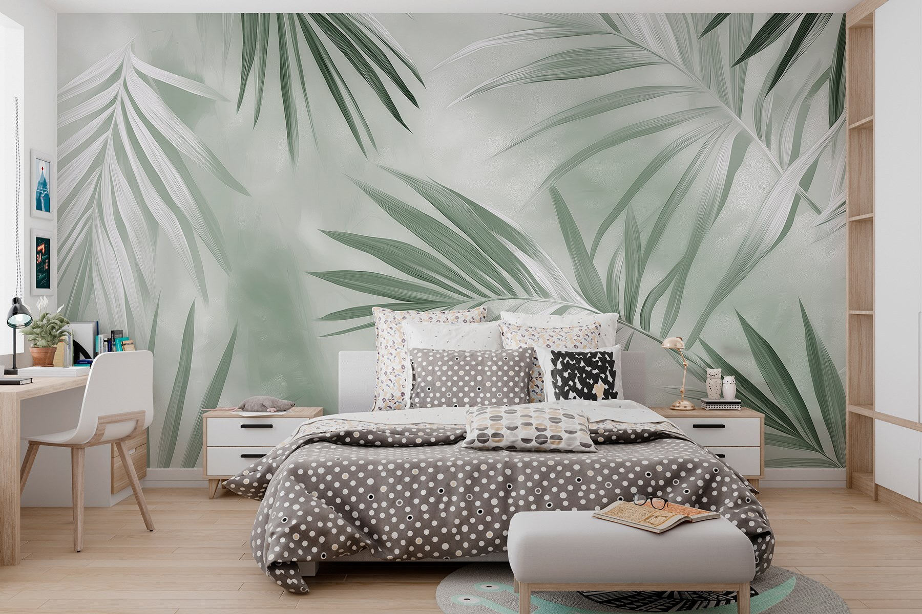 Transformez n’importe quelle pièce en un havre de paix luxuriant grâce à cette fresque murale « Nature’s Tranquil Green Foliage ». Imaginez-vous plonger dans une jungle sereine où des tons verts doux dansent sur vos murs, vous donnant l’impression d’être entouré par la nature, même si vous n’avez qu’une vue sur la ville depuis votre fenêtre ! Les doux traits des feuilles de palmier murmurent la détente, idéales pour créer un coin confortable ou une toile de fond sereine pour votre tapis de yoga. Imaginez des après-midis paresseux avec un bon livre, une tasse de thé et le parfum de la terre fraîche qui flotte dans l’air. C’est comme si vous apportiez un peu de paradis tranquille dans votre maison. Parfait pour tous ceux qui souhaitent troquer la jungle urbaine contre un peu de bonheur botanique. Alors, qu’en dites-vous ? Il est temps de rafraîchir votre intérieur !