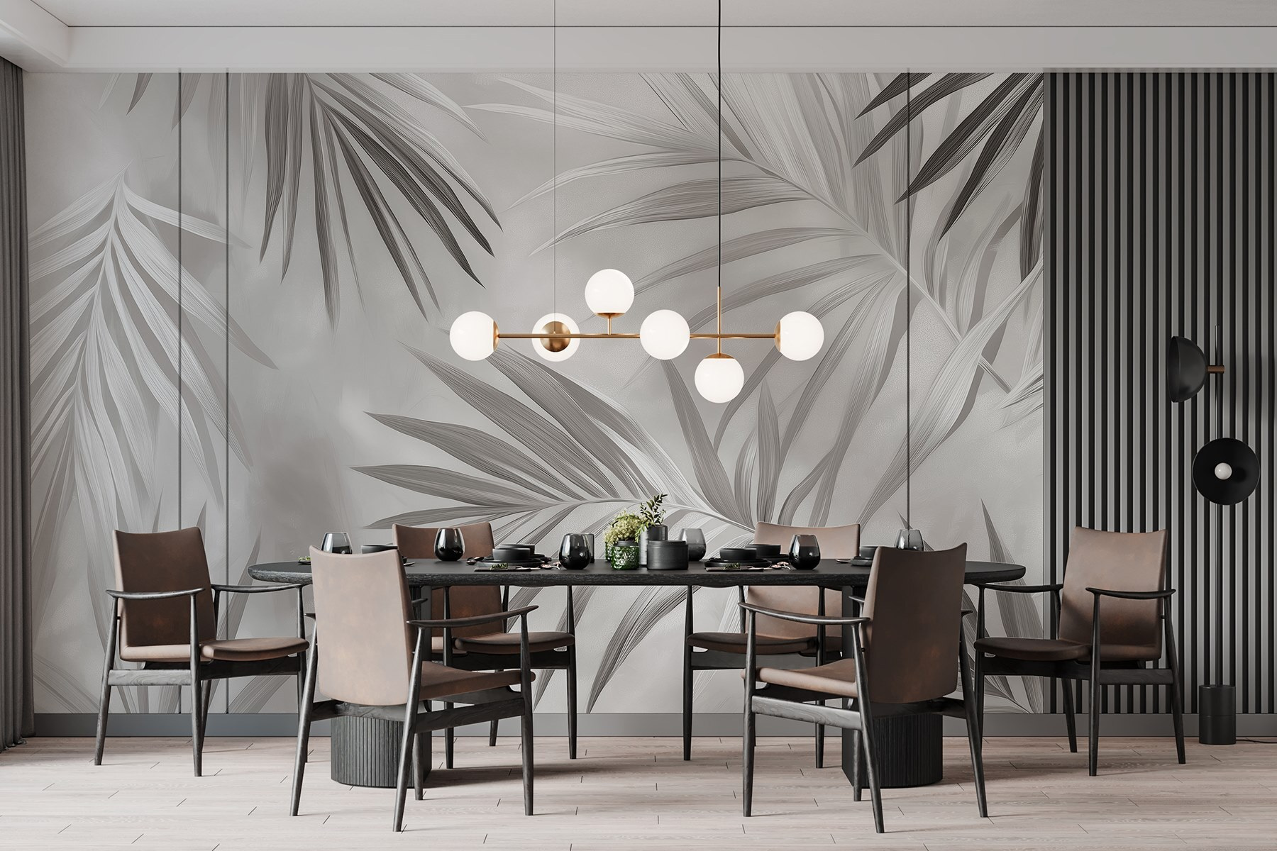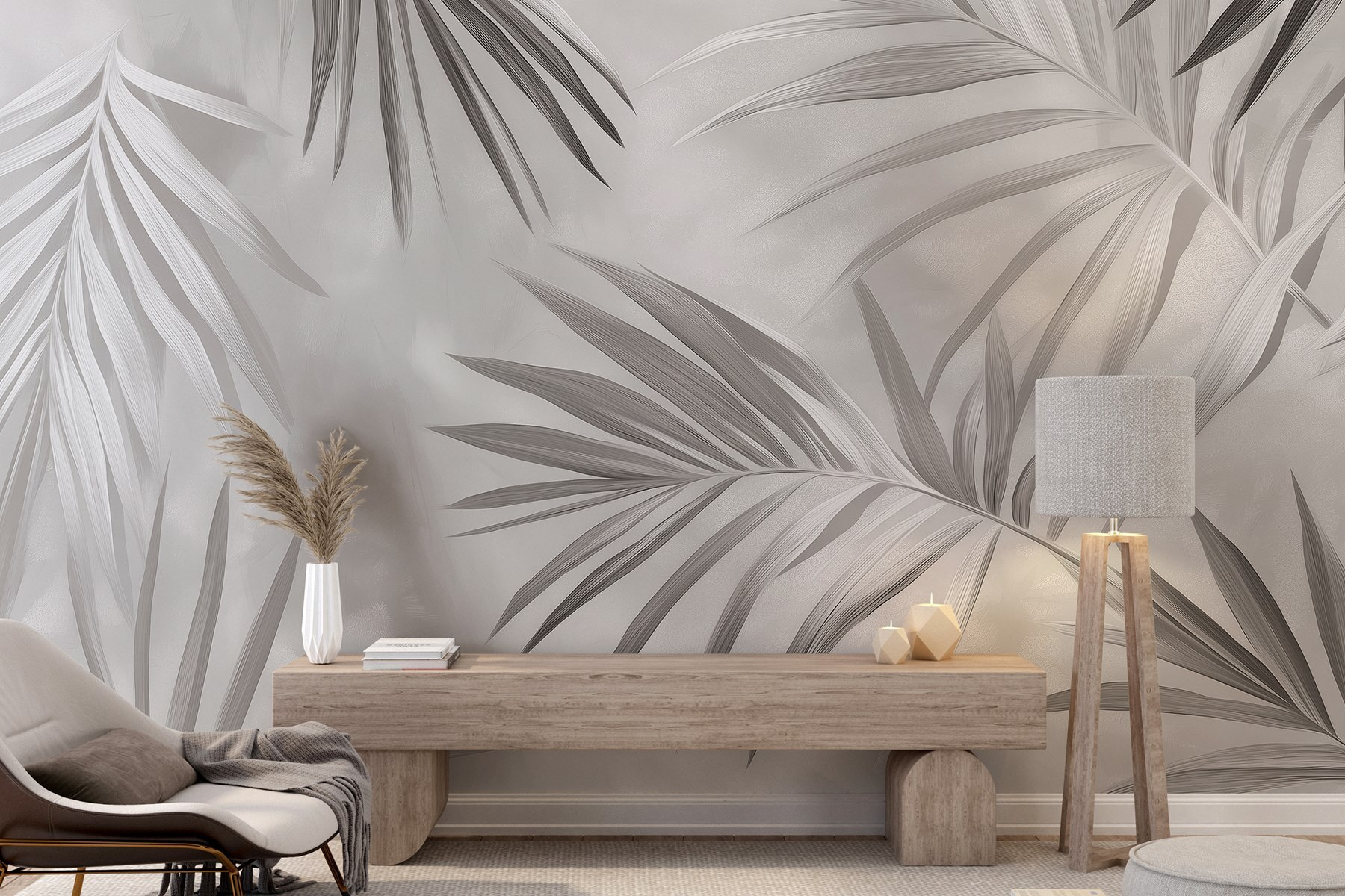 Transformez n’importe quel mur en un havre de paix grâce à cette magnifique fresque murale monochrome représentant des feuilles. Imaginez-vous plonger dans un bosquet paisible chaque fois que vous posez les yeux sur votre mur. Le mouvement délicat des feuilles, toutes enveloppées dans des nuances apaisantes de gris, crée une sensation de calme parfaite pour les espaces destinés à la détente, comme les salons confortables ou les chambres à coucher tranquilles. C’est comme faire entrer un peu de nature dans votre intérieur, sans les insectes ! De plus, ses tons subtils s’harmonisent facilement avec tous les styles de décoration. Vos amis pourraient même penser que vous avez fait appel à un décorateur d’intérieur… chut, c’est votre petit secret !