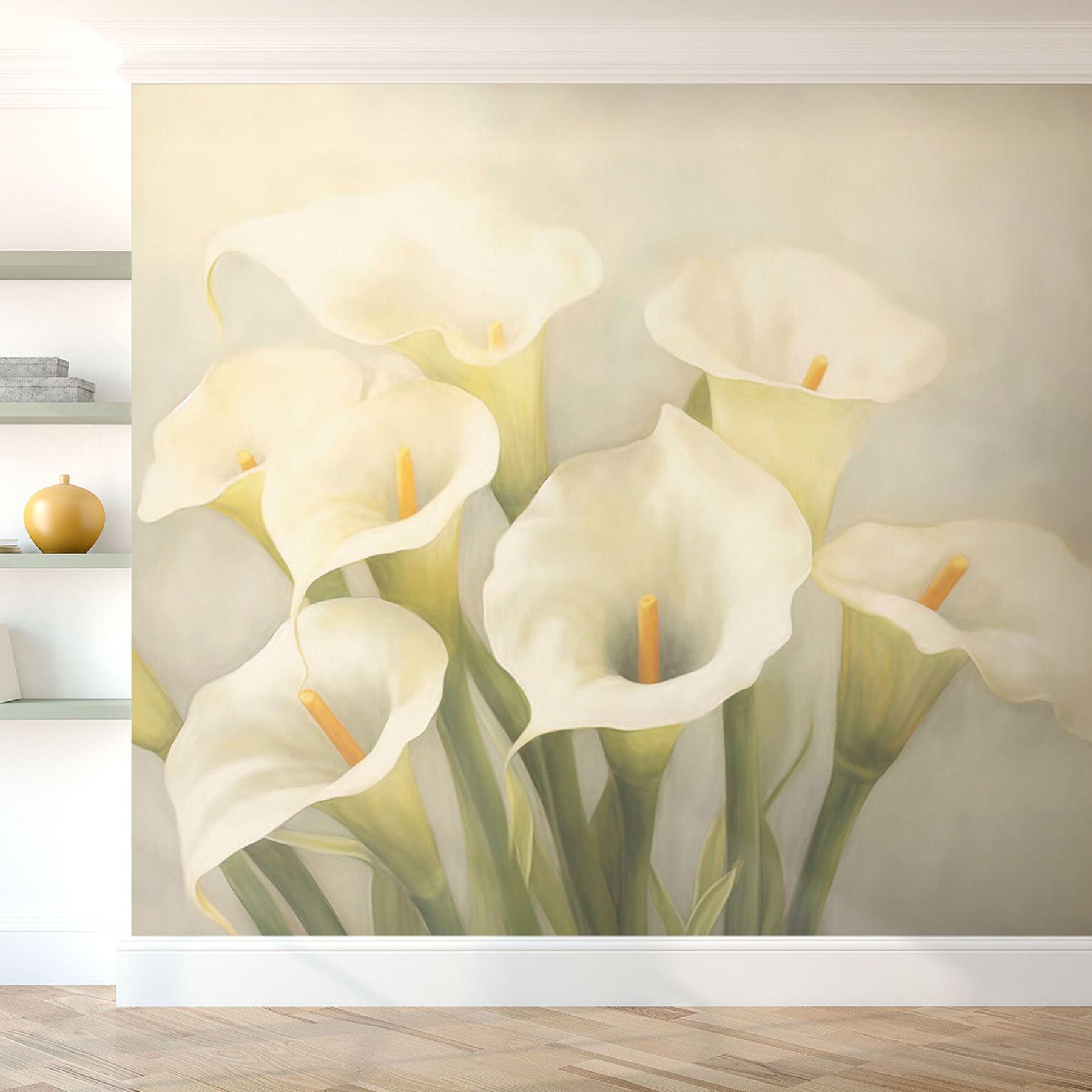 Transformez votre espace avec cette superbe fresque murale représentant un élégant bouquet de fleurs blanches. Imaginez-vous entrer dans une pièce et être accueilli par cette ambiance douce et sereine, comme une tendre étreinte de la nature. Les pétales délicats et les teintes douces créent une atmosphère calme qui invite à la détente et à la réflexion.