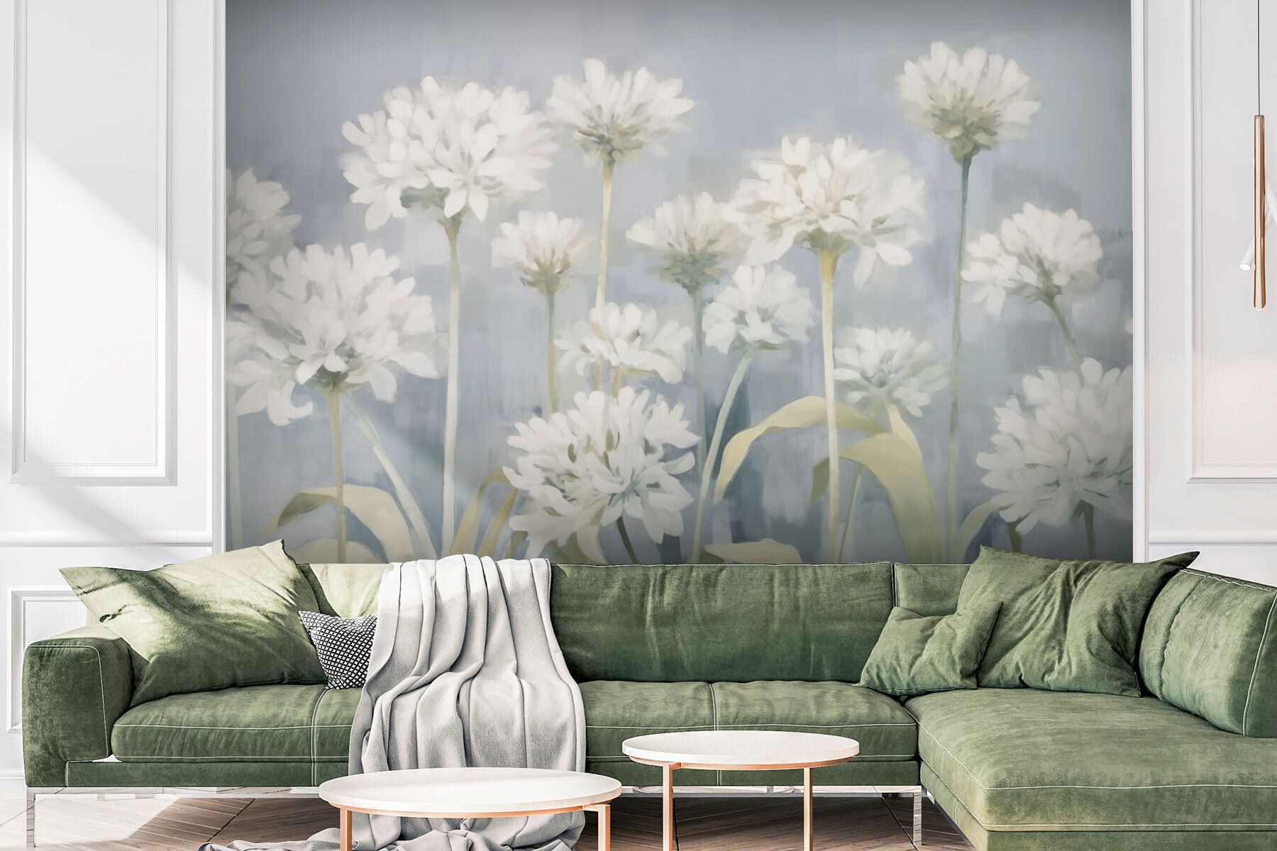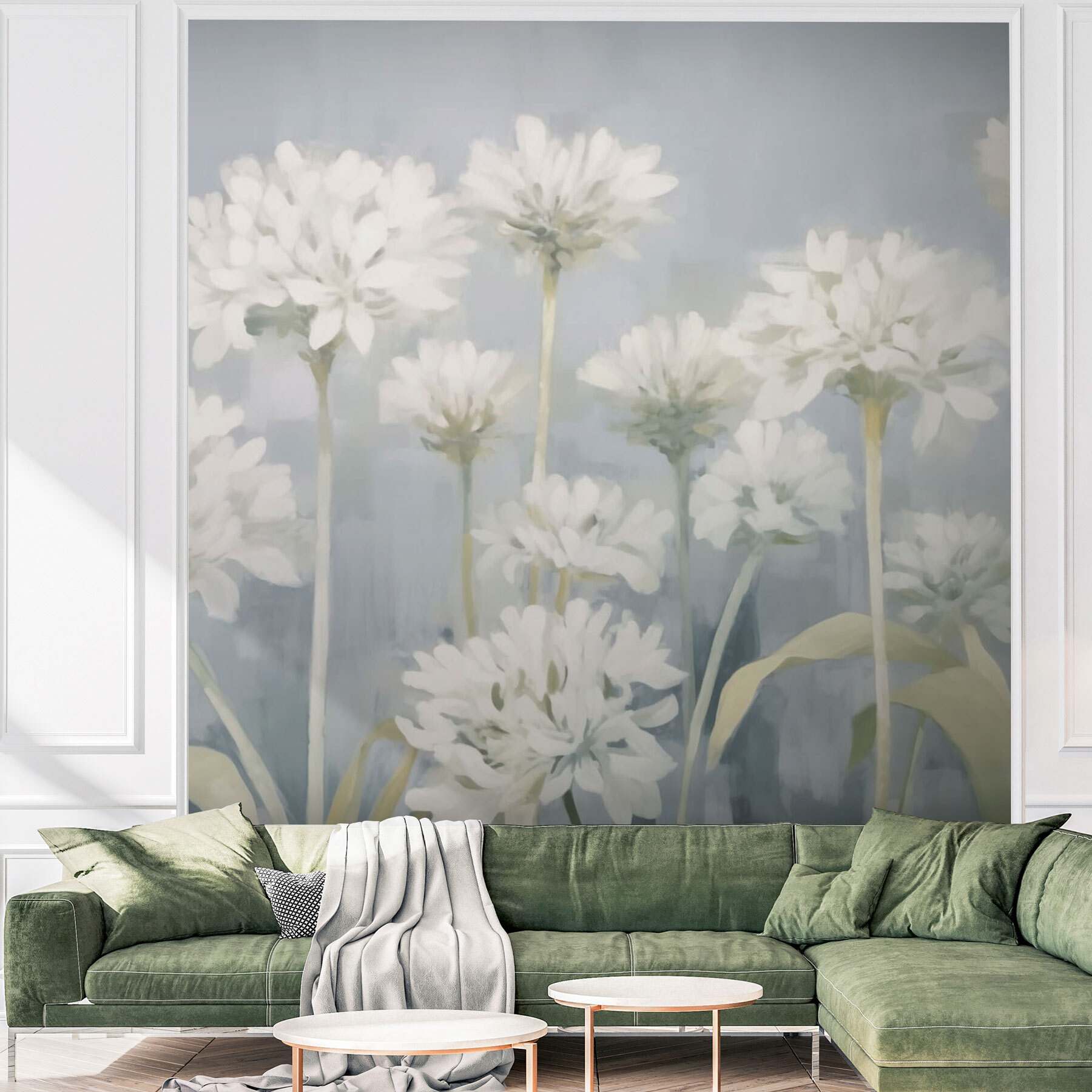 Transformez n’importe quel espace grâce à la touche délicate de la « Peinture murale de fleurs blanches ». Imaginez : vous entrez dans votre chambre et voilà ! Vous êtes accueilli par un jardin serein aux couleurs douces et aquarellées. Chaque fleur danse légèrement sur un fond apaisant, apportant un souffle de nature à l’intérieur. C’est comme avoir le printemps toute l’année, sans les éternuements. Quiconque la voit ne peut s’empêcher de sourire. Parfaite pour les coins confortables, pour égayer un coin lecture ou même pour devenir le point central d’un salon, cette fresque murale est la nouvelle meilleure amie de votre maison. Ne soyez pas surpris si vous commencez à discuter avec les fleurs !