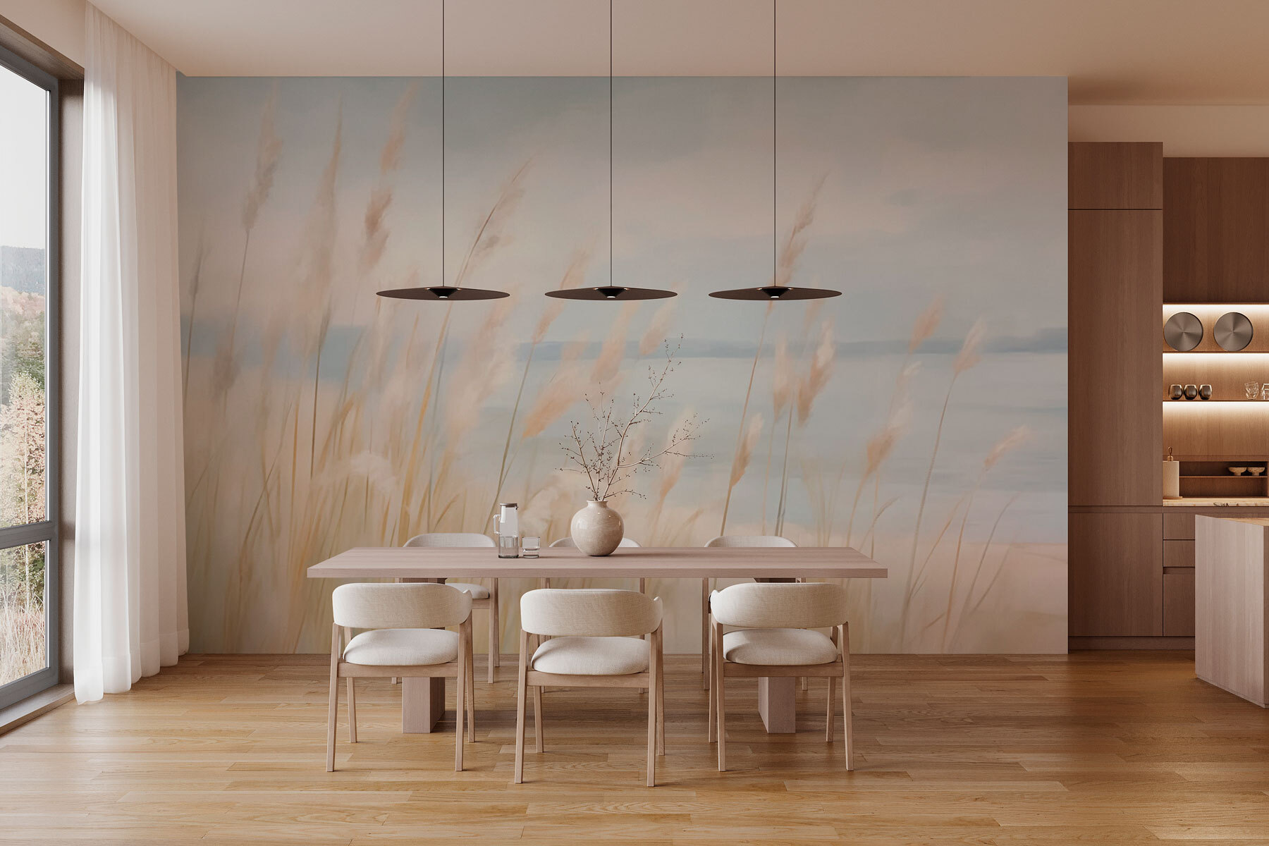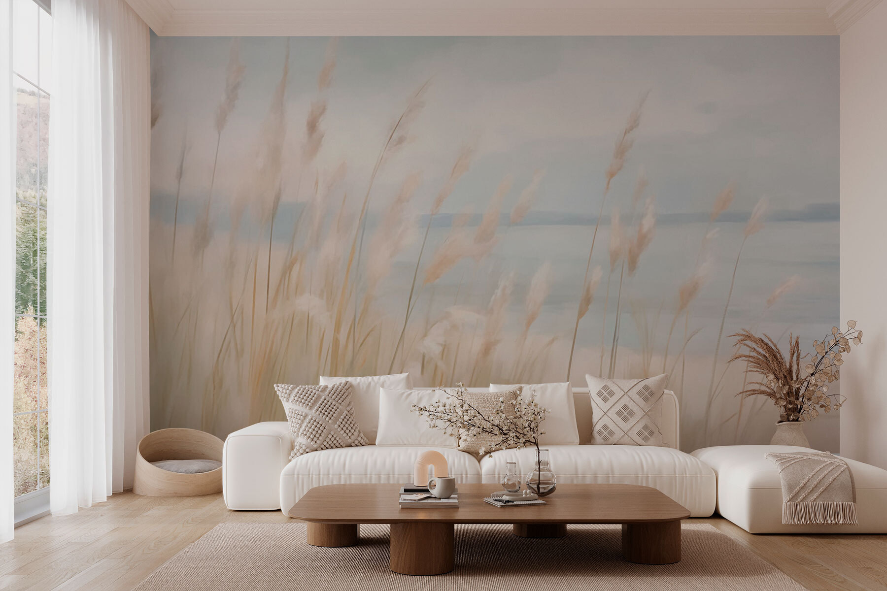 Transform any space with this lovely wall mural featuring tall grasses swaying gently by a serene body of water. Picture this: a cozy room where morning sunlight streams in, and this mural invites a sense of calm. It’s like taking a stroll through nature without stepping outside — perfect for those who love a little greenery without the upkeep! The soft colors create a soothing ambiance, making it an ideal backdrop for quiet reading or sipping coffee with friends. Seriously, who wouldn’t feel more relaxed with such a beautiful view? It’s not just decor; it’s a little slice of nature right at home!