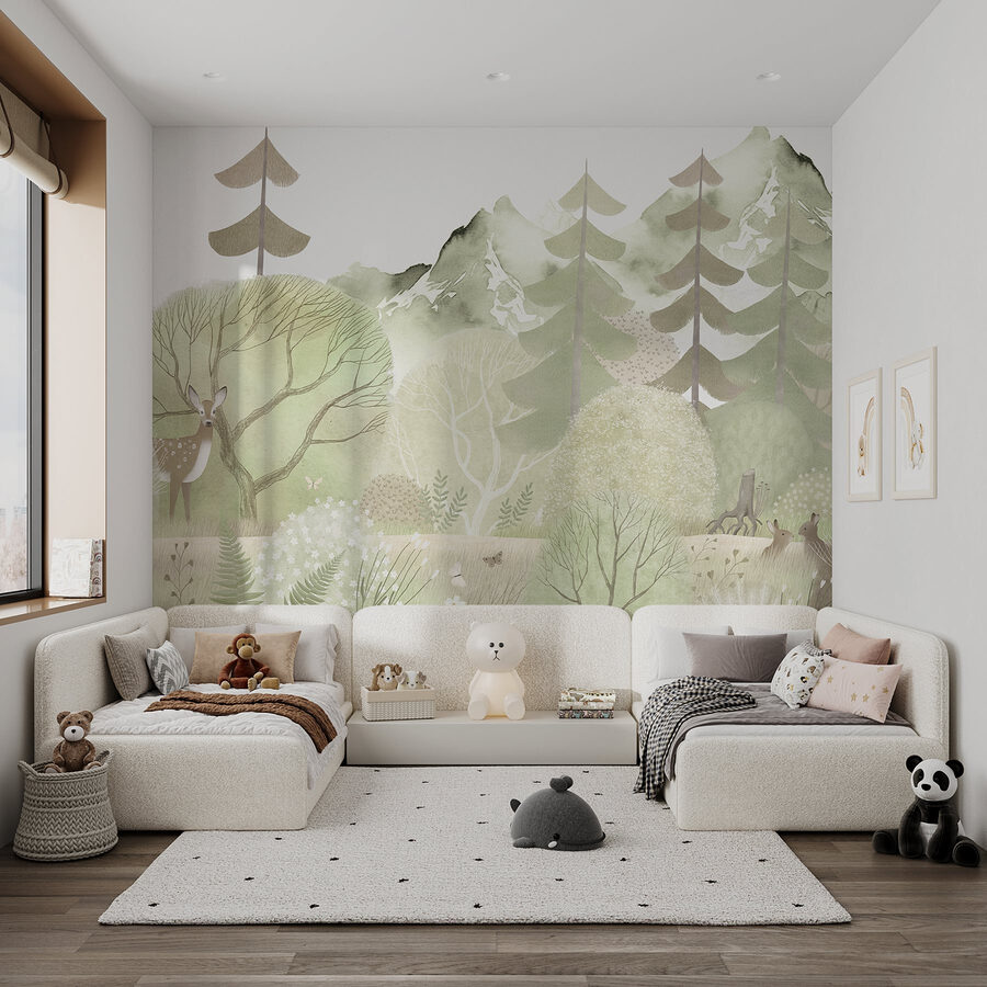 Imaginez-vous plonger dans une forêt paisible chaque fois que vous entrez dans votre espace. Cette fresque murale, « Deer in a Forest » (Cerf dans la forêt), capture ce moment parfait où la nature murmure ses secrets. Imaginez des verts tendres, des arbres délicats et un cerf curieux qui jette un œil à travers le feuillage. C’est comme avoir une mini-forêt chez vous, sans avoir besoin de chaussures de randonnée !