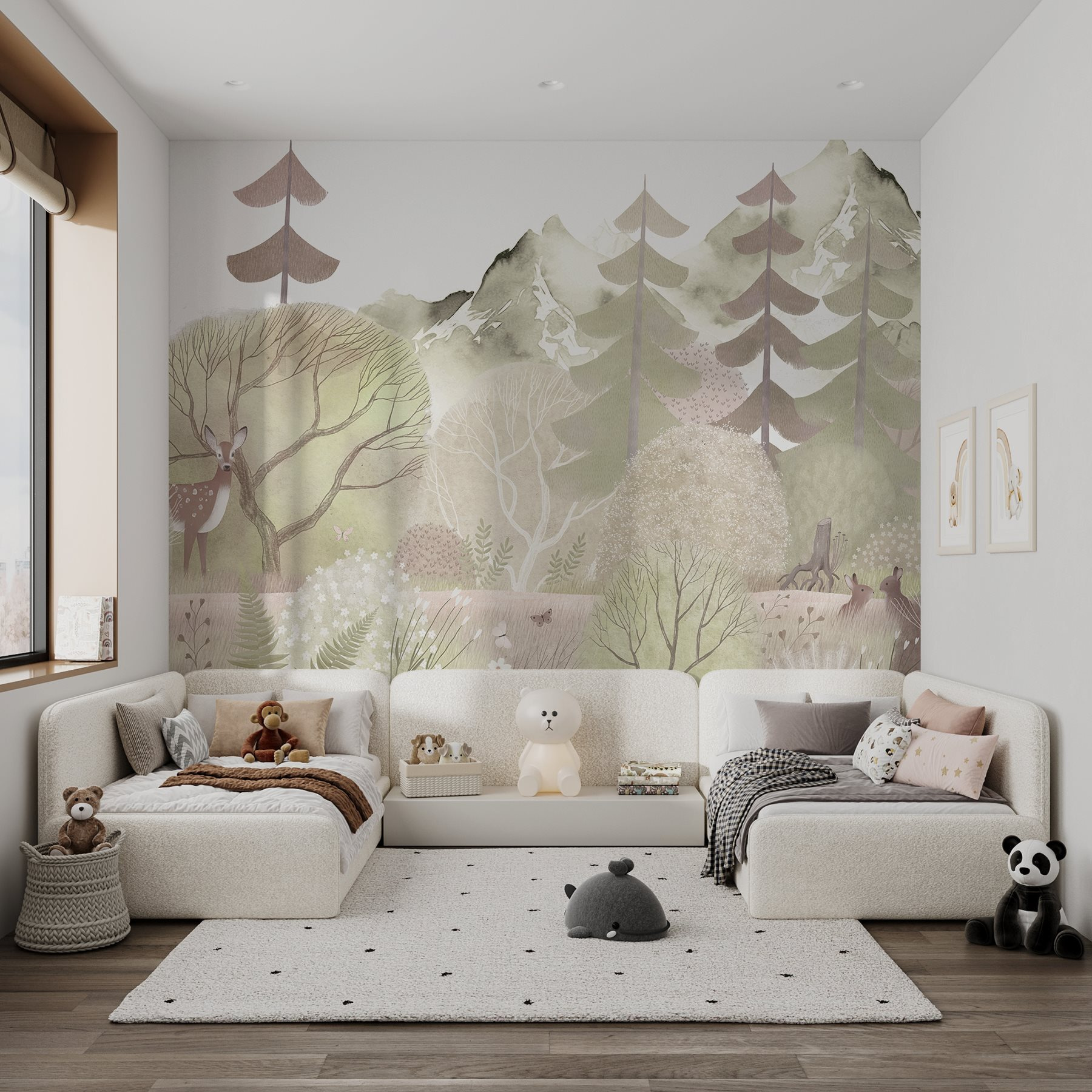 Transformez n’importe quelle pièce en une escapade sereine dans la forêt grâce à cette ravissante fresque murale « Deer in a Forest » (Cerf dans la forêt). Imaginez-vous dans une forêt paisible, où la présence douce des cerfs et les couleurs douces et discrètes créent une atmosphère chaleureuse. Chaque regard sur cette fresque murale invite à la détente, ce qui la rend parfaite pour un salon confortable ou une chambre à coucher de rêve. Que vous soyez en train de siroter un café, de rêvasser ou même de lire, cette fresque murale vous murmure la tranquillité. C’est la nature, capturée avec art, qui fait entrer le plein air directement dans votre maison. Alors n’hésitez plus, laissez vos murs raconter une histoire !