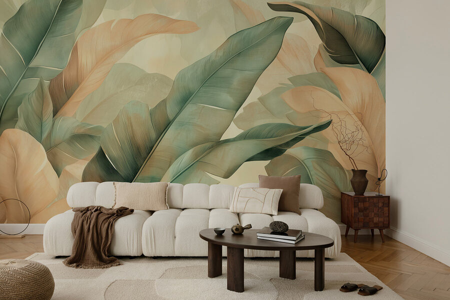 Transformez votre espace avec la peinture murale “Lush Leaves in Delicate Hues”. Imaginez que vous pénétrez dans une oasis tropicale à chaque fois que vous entrez dans la pièce – ces verts riches et feuillus ont une façon d’inviter l’extérieur à l’intérieur. Les doux tons de pêche transparaissent, ajoutant une touche de chaleur qui convient parfaitement à n’importe quel coin. C’est comme si vous accrochiez un morceau de nature à votre mur, sans avoir à arroser les plantes. Parfait pour égayer un salon confortable ou donner de la vie à un coin lecture. Imaginez-vous en train de siroter votre boisson préférée entouré de cette ambiance luxuriante, ou de recevoir des amis qui ne peuvent s’empêcher d’admirer la beauté des lieux. Plus qu’un simple décor, il s’agit d’une expérience enrichissante qui pourrait même vous inspirer des rêves de contrées lointaines.