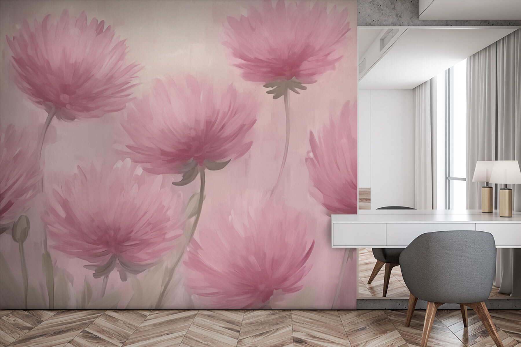 Transformez n’importe quelle pièce en un pays des merveilles fleuri avec cette peinture murale enchanteresse de fleurs roses. Imaginez que vous vous réveillez avec de délicats pétales dansant sur les murs, vous invitant à commencer la journée avec le sourire. C’est comme si vous aviez un jardin dans votre espace de vie, sans avoir besoin d’avoir la main verte. Les teintes douces créent une ambiance calme et confortable, idéale pour se lover dans un bon livre ou siroter un café en rêvassant. Que ce soit dans le salon ou dans une chambre à coucher sereine, cette peinture murale promet d’apporter de la joie et une touche de fantaisie tous les jours. De quoi booster l’humeur de tout un chacun.