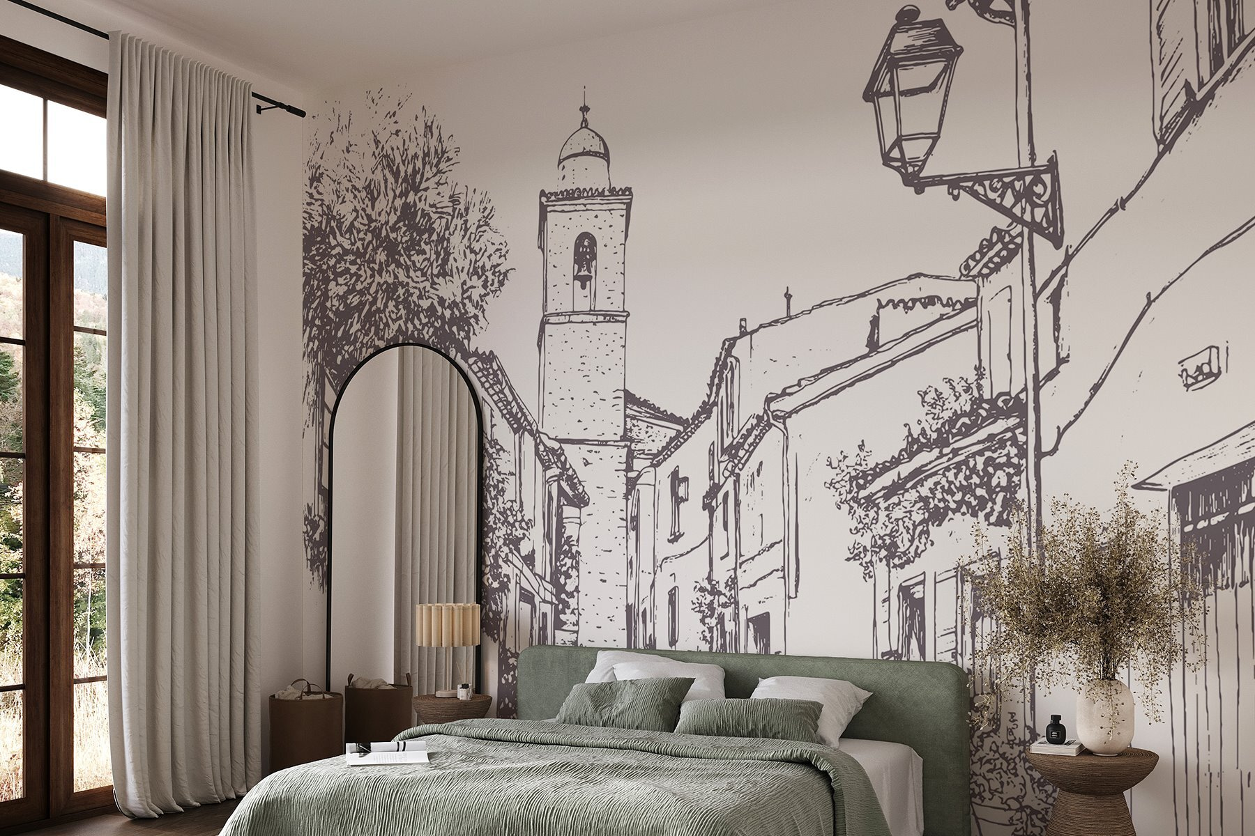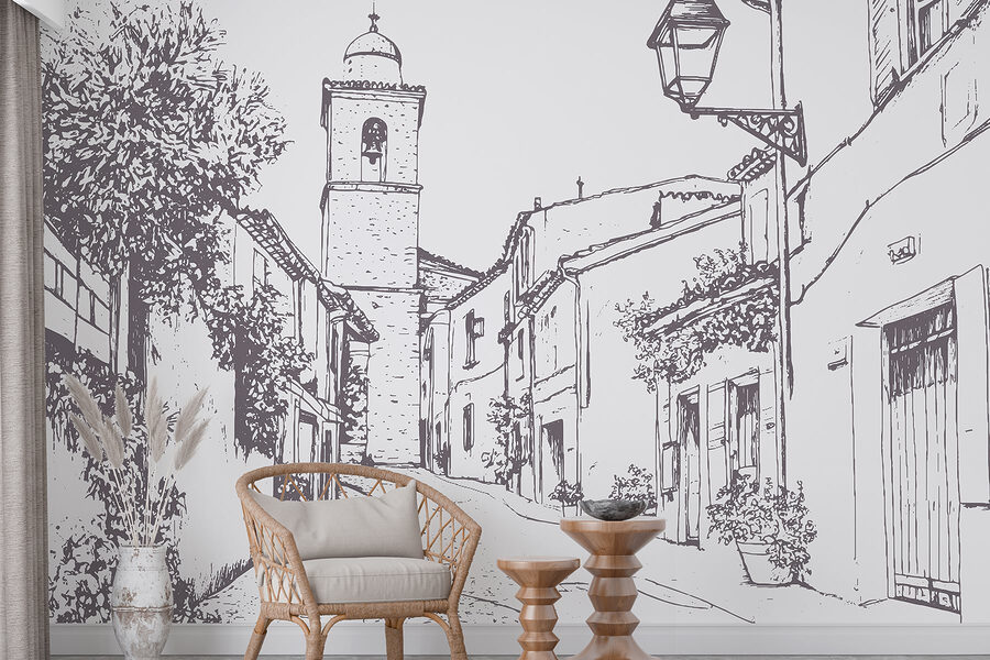 Transformez n’importe quel mur avec cette charmante peinture murale d’une scène de rue pittoresque. Imaginez : un chemin sinueux bordé de façades de bâtiments et d’un joli clocher, le tout enveloppé dans un magnifique style croquis. C’est comme une mini escapade à chaque fois que vous passez devant. Imaginez que vous preniez un café, que vous vous installiez dans le coin douillet que vous avez créé et que vous laissiez votre esprit vagabonder le long de cette allée pittoresque. Les plantes qui grimpent le long des bâtiments ajoutent un soupçon de vie, donnant un sentiment de chaleur et de nostalgie. Cette pièce n’est pas seulement un décor, c’est une invitation à la rêverie sur les rues ensoleillées et les aventures au coin de la rue. Parfait pour ceux qui ont envie d’une touche de fantaisie dans leur espace !
