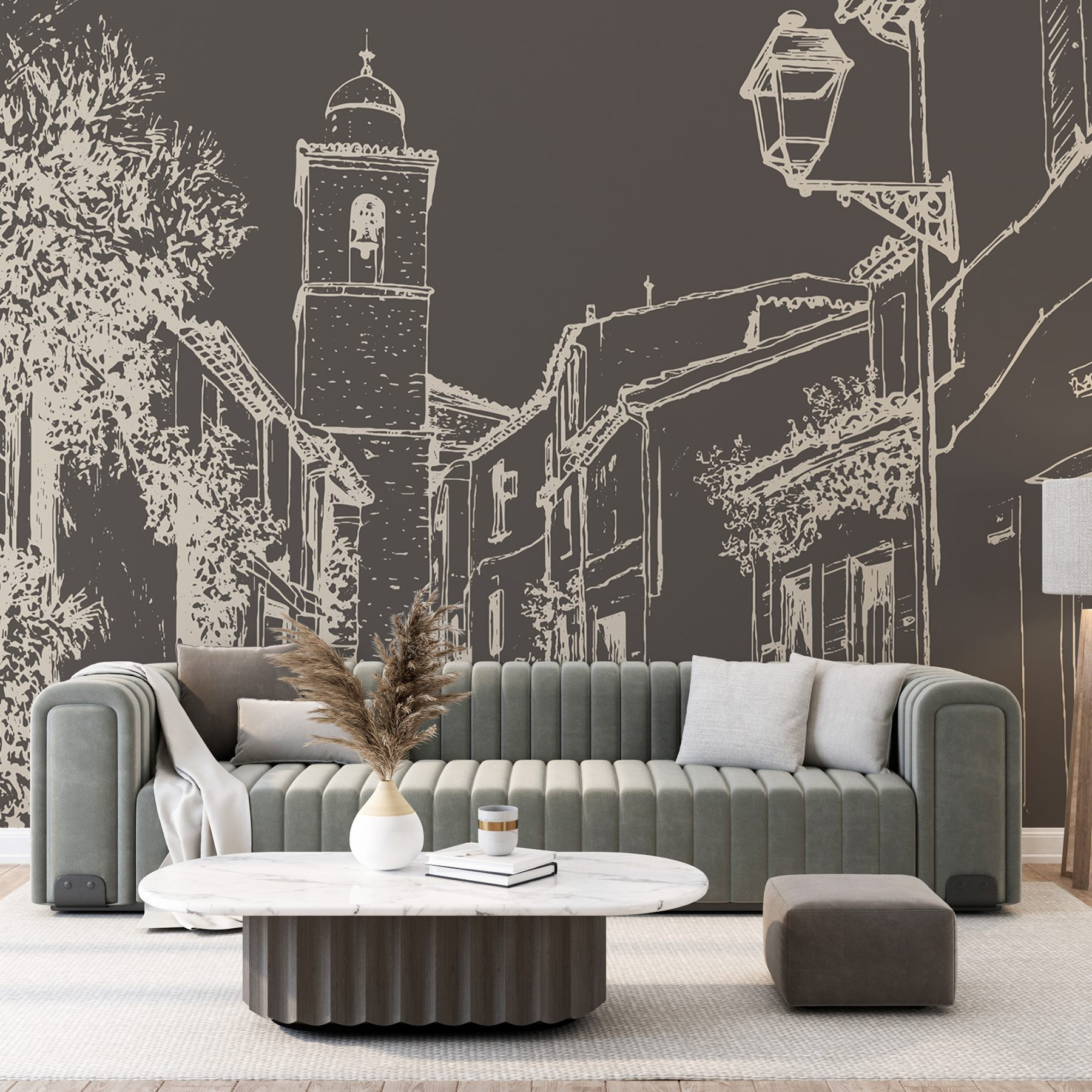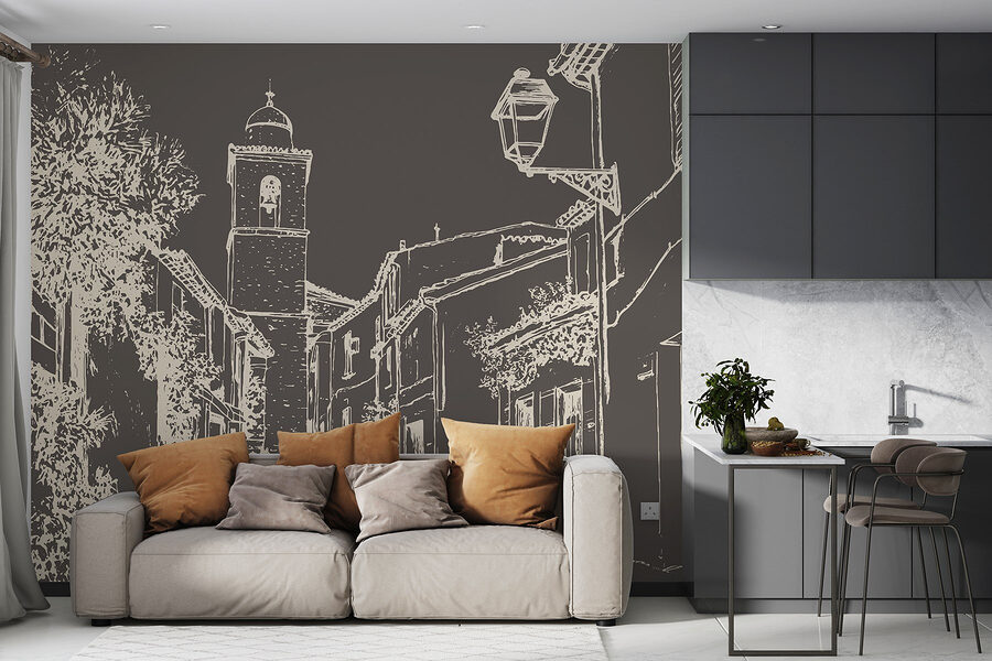 Entrez dans une charmante scène de rue avec cette peinture murale qui capture la chaleur d’une vie de village douillet. Avec ses bâtiments pittoresques et son clocher qui semble tout droit sorti d’un livre de contes, il est parfait pour susciter la rêverie et l’envie de voyager. Imaginez que vous sirotiez un café en contemplant cette jolie vue, comme si l’arôme du pain frais s’échappait de l’autre côté de la peinture murale. Le doux travail au trait apporte une touche ludique, invitant à un sentiment de calme. Parfaite pour n’importe quelle pièce, cette peinture murale apporte du caractère et ces petits moments agréables qui font que l’on se sent chez soi, et bien chez soi. Elle permet également d’engager la conversation – qui n’aurait pas envie de parler de ses voyages imaginaires ?