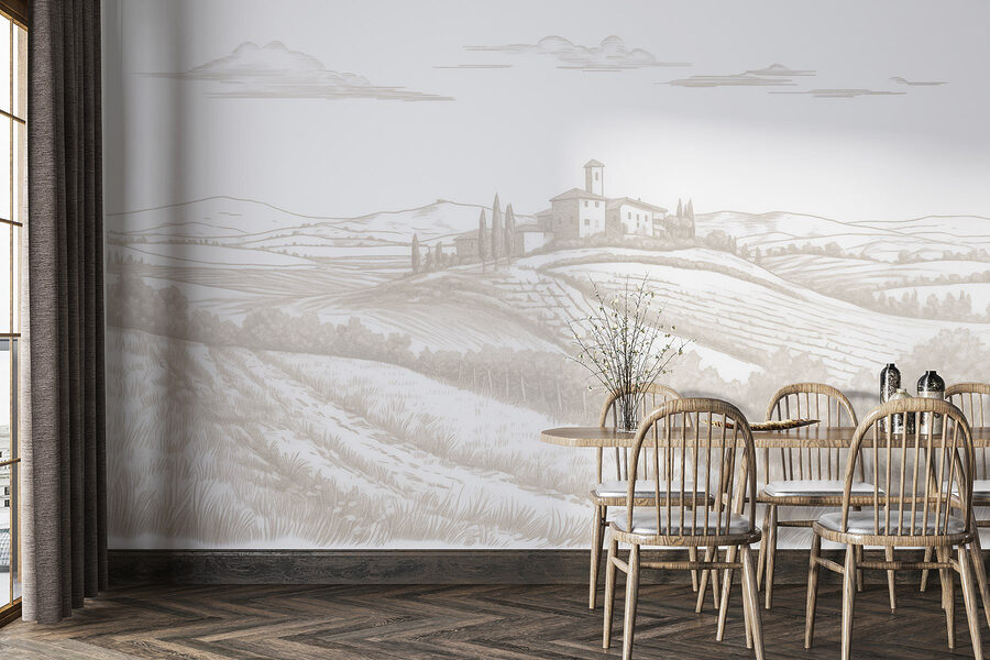 Transformez votre espace avec cette peinture murale captivante, “Paysage avec une maison et des champs”. C’est comme si vous apportiez une tranche de campagne directement dans votre maison, sans avoir besoin d’un tracteur. Imaginez : de douces collines ondulantes, une charmante petite maison et des champs qui ondulent dans la brise. C’est serein, accueillant, et même les pièces les plus occupées se sentiront calmes et sereines.
