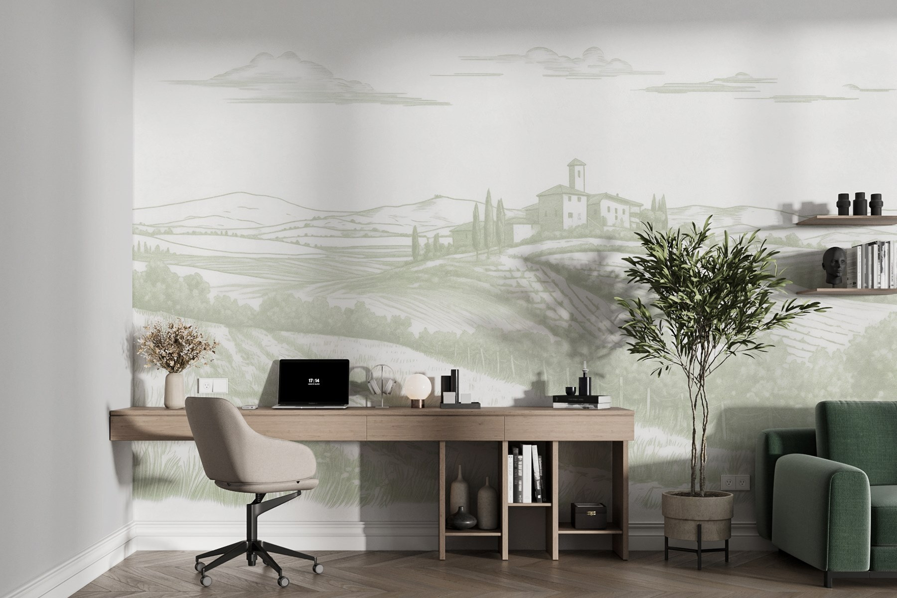 Transformez n’importe quelle pièce en une escapade paisible grâce à cette magnifique peinture murale représentant un paysage serein. Imaginez ces douces collines ondulantes, une charmante maison qui épouse le paysage et des champs qui s’étendent comme une étreinte chaleureuse. Cela évoque un week-end de rêve à la campagne, idéal pour rendre le quotidien un peu moins pénible. Les teintes douces apportent un calme auquel il est difficile de résister. C’est comme si vous invitiez l’air frais et la tranquillité de la nature dans votre maison, sans les allergies et les piqûres d’insectes. Qui ne voudrait pas d’un petit coin de paradis à contempler en sirotant son café ?