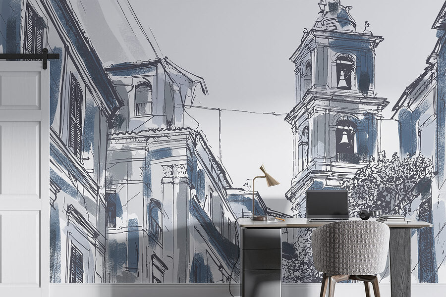 Voici une peinture murale qui murmure des histoires de charme et d’histoire – un dessin de rêve d’un bâtiment avec des cloches, qui ne demande qu’à transformer n’importe quelle pièce. Imaginez cette beauté illuminant votre espace, apportant un peu de cette ambiance pittoresque et ancienne sur vos murs. C’est comme pénétrer dans une charmante rue européenne, où chaque regard fait naître une rêverie.
