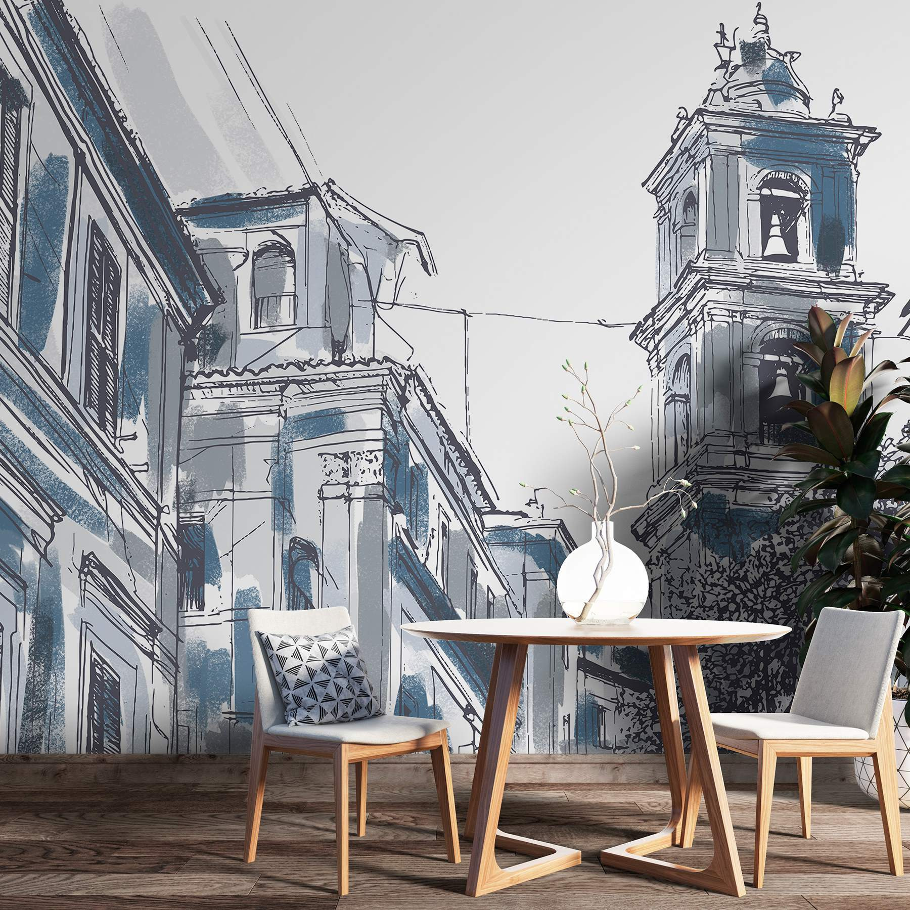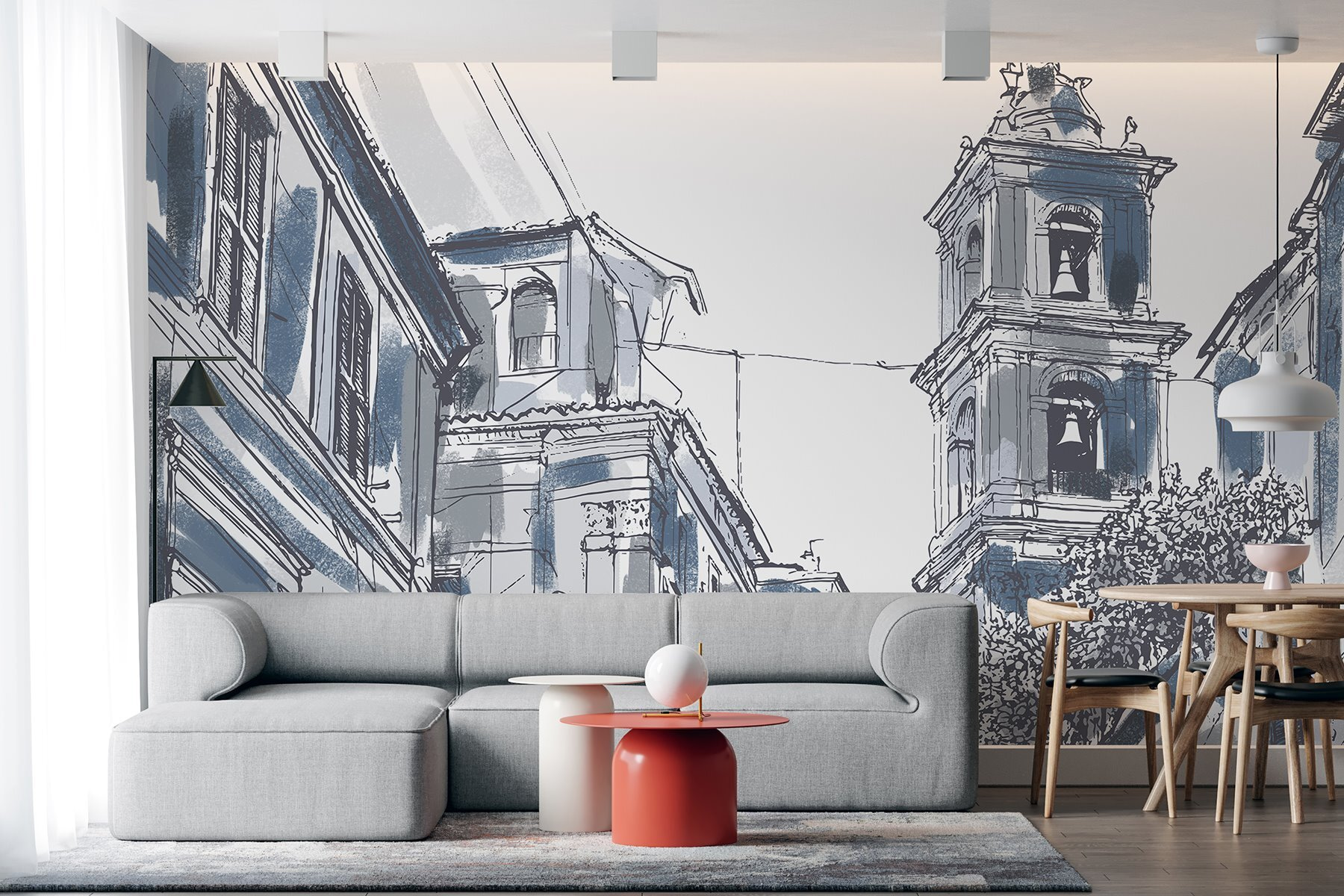 Voici une peinture murale qui murmure des histoires de charme et d’histoire – un dessin de rêve d’un bâtiment avec des cloches, qui ne demande qu’à transformer n’importe quelle pièce. Imaginez cette beauté illuminant votre espace, apportant un peu de cette ambiance pittoresque et ancienne sur vos murs. C’est comme pénétrer dans une charmante rue européenne, où chaque regard fait naître une rêverie.
