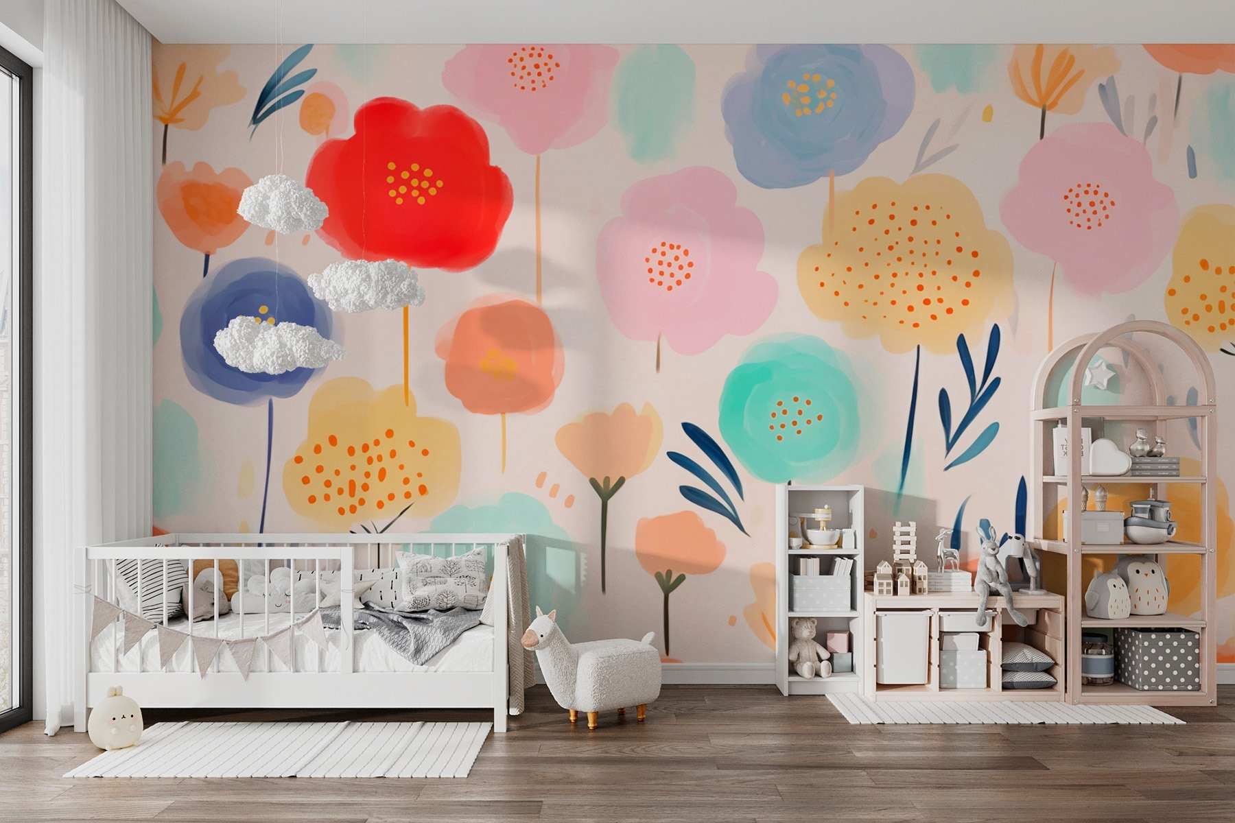 Transformez un mur terne en un paradis fleuri grâce à cette peinture murale vivante représentant des fleurs colorées sur un doux fond blanc. Imaginez qu’à chaque fois que vous entrez dans une pièce, vous pénétrez dans un jardin vibrant, entouré de fleurs joyeuses. C’est comme si vous apportiez la joie du printemps à l’intérieur – pas besoin d’arroser ! Parfait pour l’espace d’un enfant ou même comme accent ludique dans un coin lecture confortable. Chaque pétale semble murmurer “Amusons-nous !”. Le design fantaisiste de cette peinture murale ajoute une touche de personnalité, rendant n’importe quel espace instantanément plus lumineux et plus accueillant. De plus, c’est un moyen facile de stimuler l’imagination et la créativité. Qui n’aurait pas envie de rêvasser au milieu de ces jolies fleurs ?