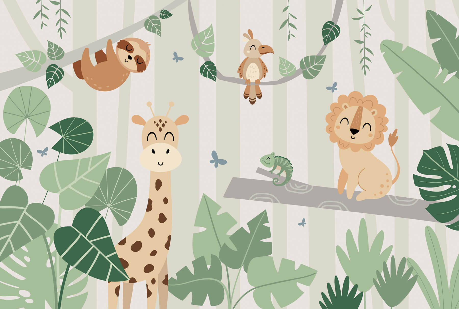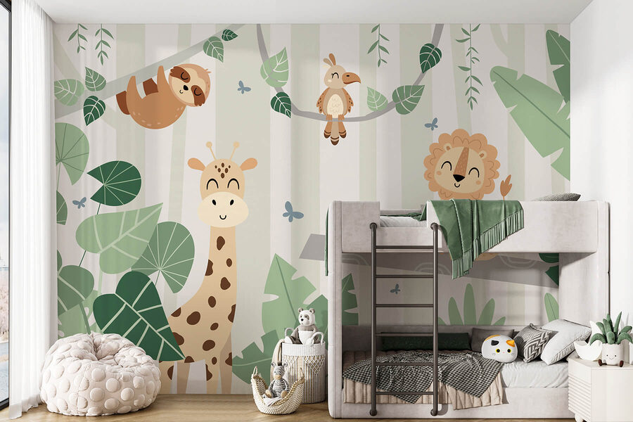 Transformez n’importe quel espace avec cette charmante peinture murale de la jungle qui met en scène de charmants animaux, dont une girafe joyeuse, un paresseux décontracté et un lion enjoué. C’est comme si vous pénétriez dans un paradis ludique à chaque fois que vous entrez dans la pièce. Imaginez les enfants riant au milieu de la verdure luxuriante et de leurs amis à fourrure. Ils pourraient même se prendre pour des explorateurs lors d’un safari passionnant ! Chaque détail apporte un sentiment d’amusement et d’émerveillement, parfait pour stimuler l’imagination. Cette peinture murale ne se contente pas d’égayer les murs, elle apporte aussi une touche d’insouciance à l’heure du jeu, du coucher ou à n’importe quel moment. Qui ne voudrait pas avoir son propre refuge dans la jungle à la maison ?