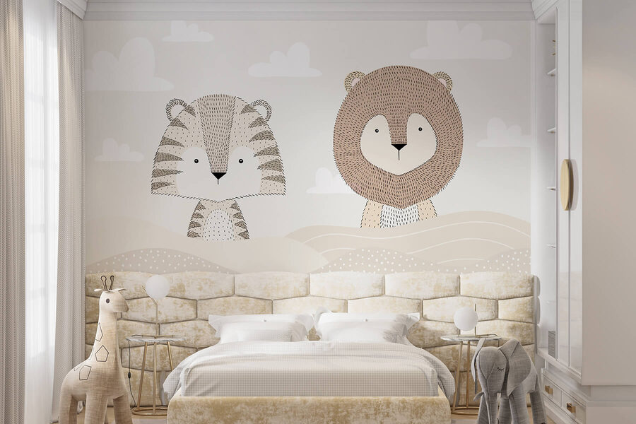 Apportez une touche d’aventure dans l’univers de votre enfant avec cette ravissante peinture murale représentant un lion et un tigre se prélassant dans un paysage désertique serein. C’est comme des vacances tropicales sur vos murs ! Les couleurs douces créent une atmosphère calme, parfaite pour rêver le jour ou se blottir la nuit. Imaginez des histoires d’escapades dans la jungle sous les yeux de ces charmantes créatures – les petits s’endormiront en pensant à des aventures ludiques. Cette peinture murale, qui est à la fois un héros et un ami, confère à chaque pièce un caractère un peu plus magique. Parfaite pour les chambres d’enfants ou les crèches, elle ajoute à la fois de l’amusement et de la chaleur. De plus, qui n’aime pas un couple d’adorables compagnons animaux ?